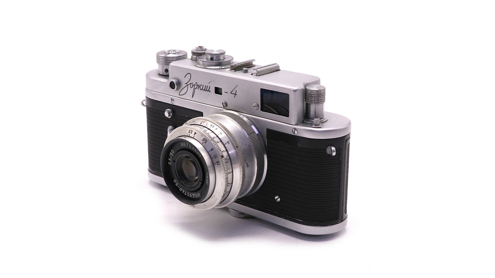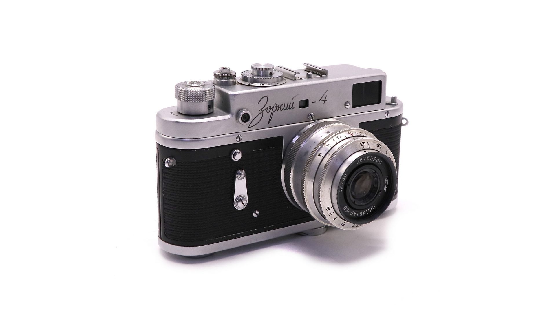 Редкая версия фотоаппарата Зоркий 4 с символикой 50 годовщины Великой Октябрьской Социалистической Революции (50 лет Октября). Производство - Красногорский Механический Завод.