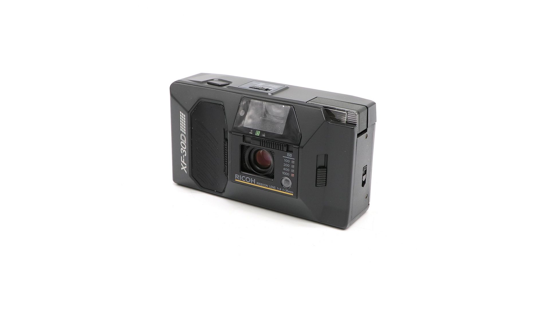 В нем используется 35-миллиметровый объектив Rikenon f / 4.0, который защищен сдвижной крышкой объектива. Фокусировку можно отрегулировать от 1,0 м до бесконечности, перемещая регулятор над объективом. Можно выбрать три метки зоны фокусировки. Диапазон выдержки от 1/30 до 1/500 сек. Автоспуск имеет задержку 10 сек. Чувствительность ISO пленки можно отрегулировать на лицевой стороне камеры от 100, 200, 400 или 1000.