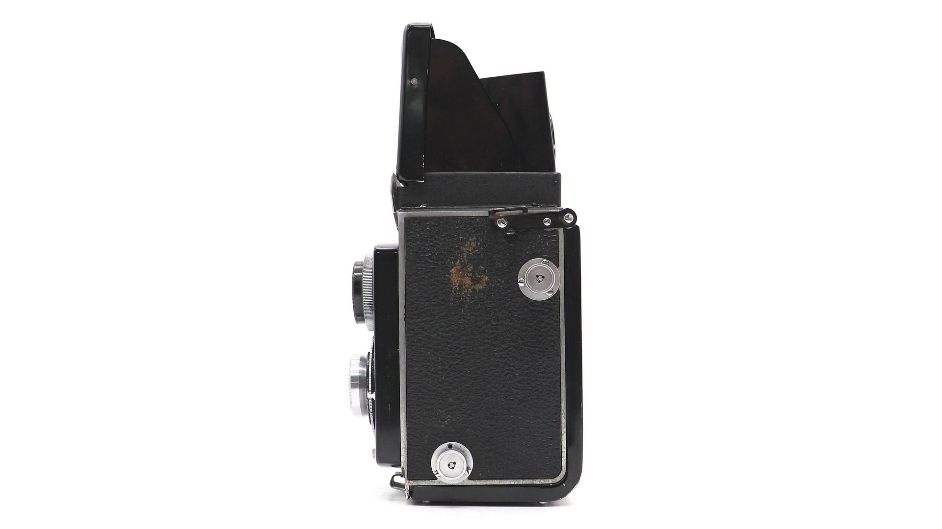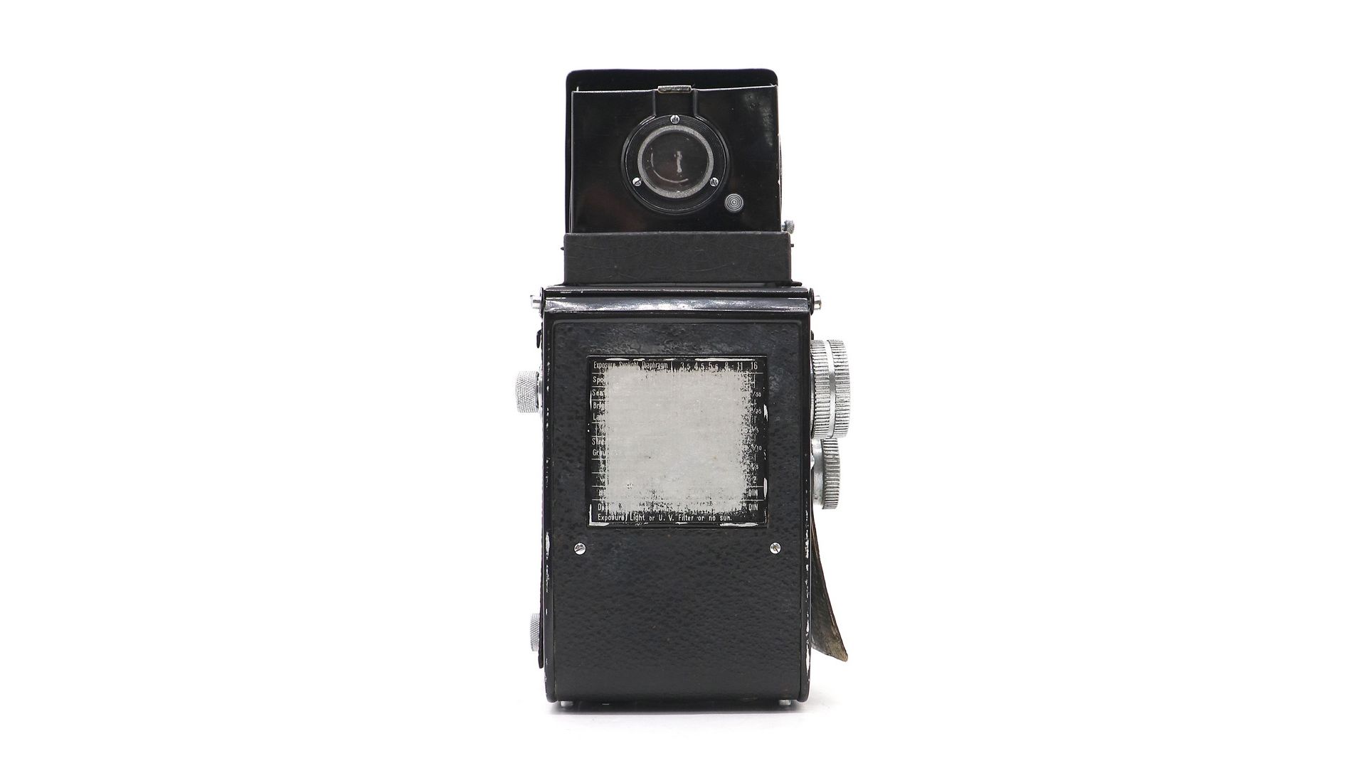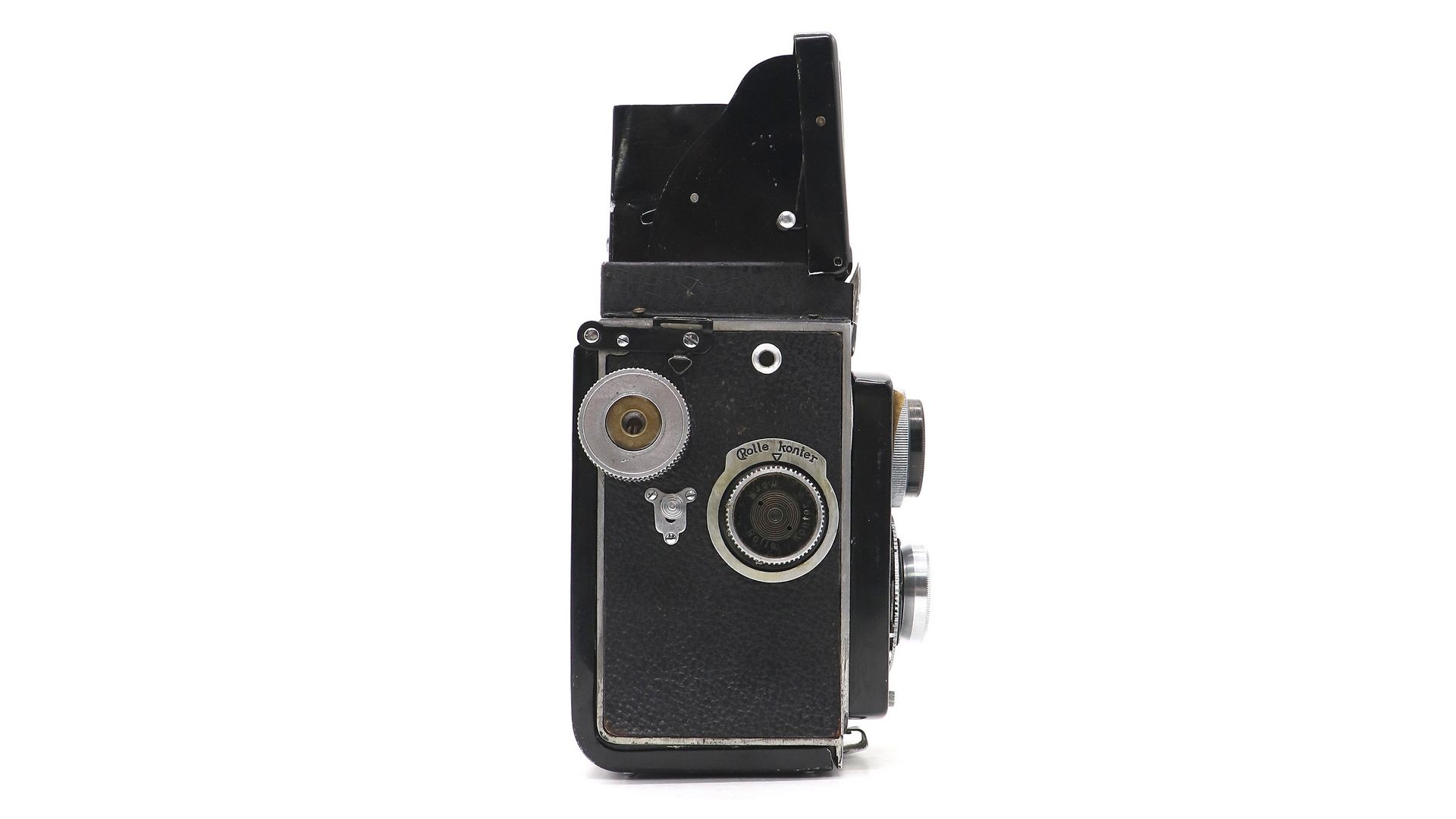 Rollekonter II в хорошем состоянии, повреждена направляющая механизма закрытия шахты. Не корректно отрабатывает выдержки 1, 1/2, 1/5, 1/10. Камера оснащена объективами U Hitonar Anastigmat 75mm f / 3.5.