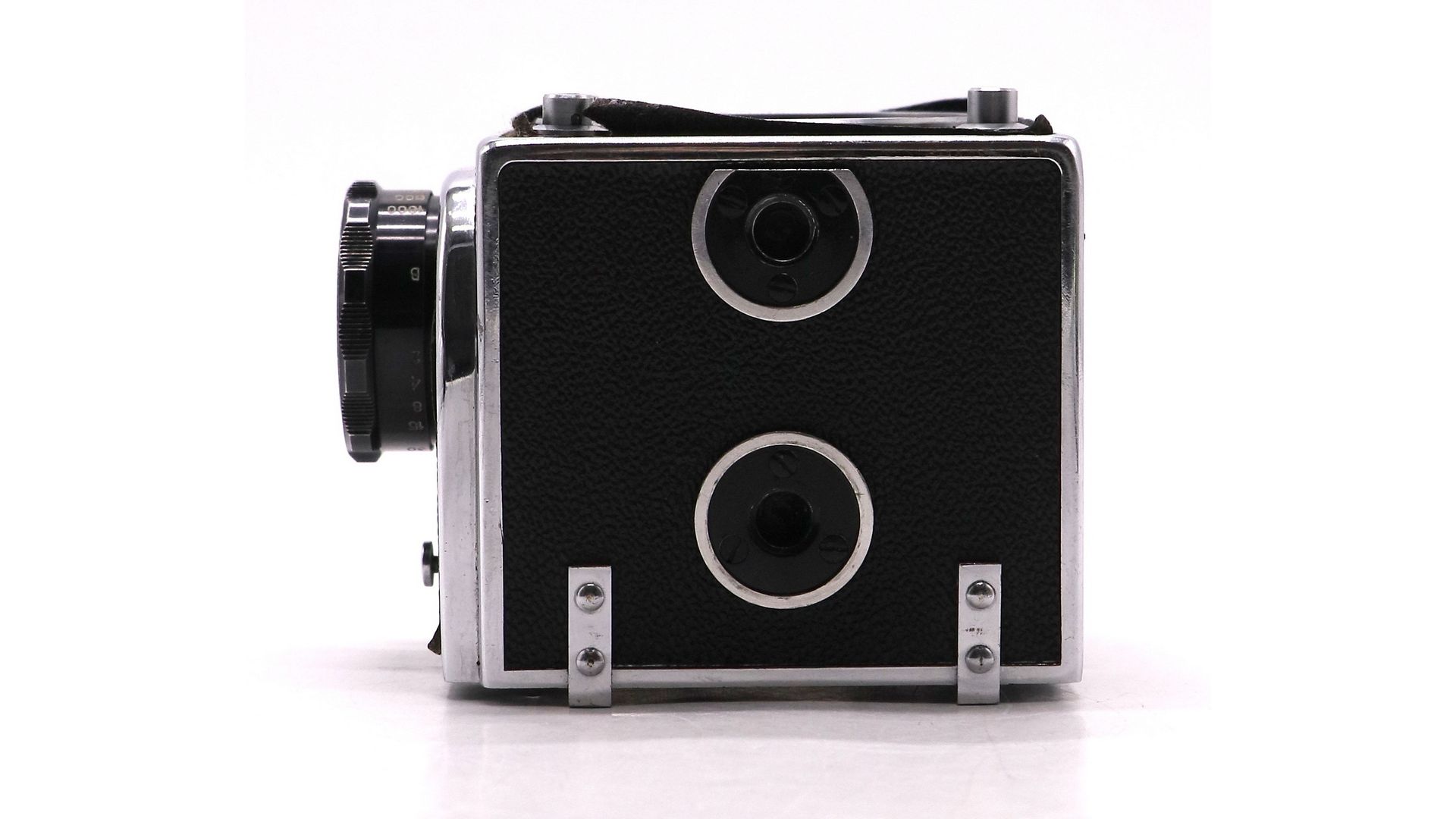 – Отличительные особенности: размер кадра 6×6 см, плёнка типа 120 (12 кадров). Шторный затвор с металлическими шторками, выдержки от 1/2 до 1/1000 сек