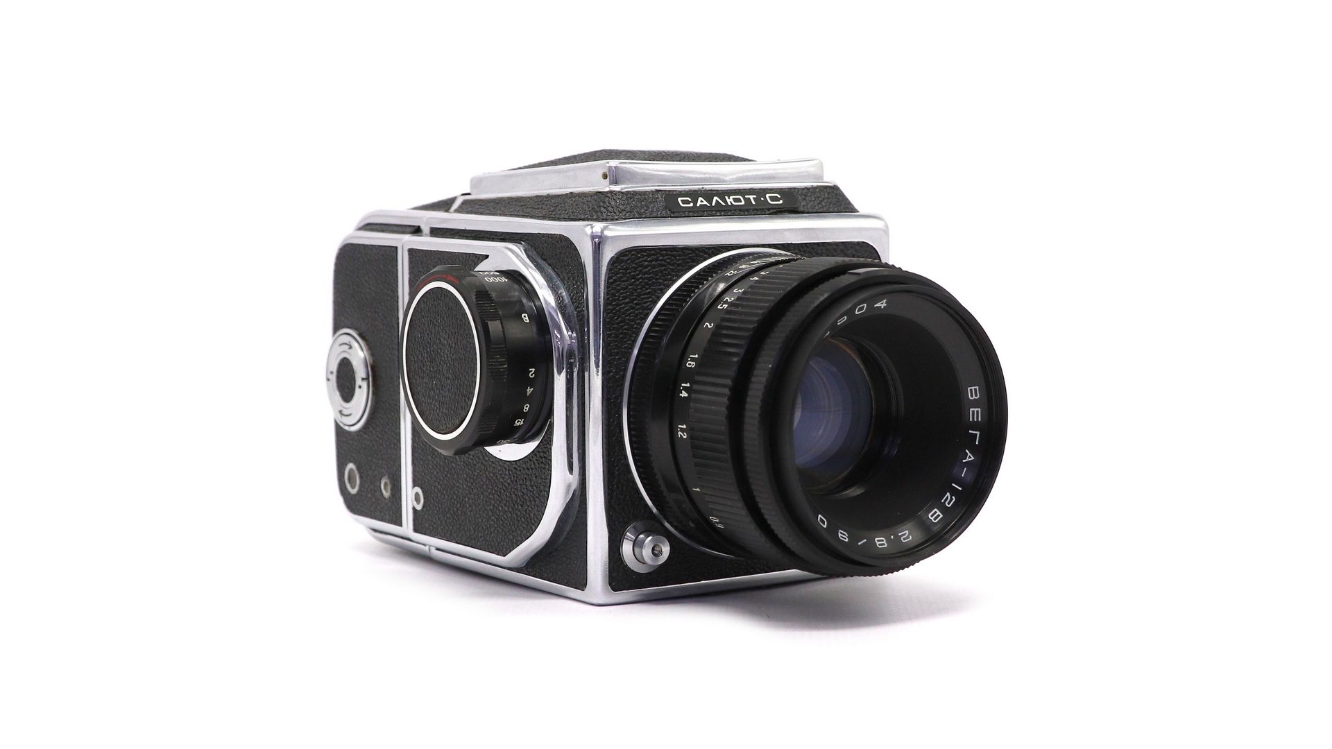 Салют-С — это одна из самых совершенных и престижных среднеформатных систем СССР, созданная на базе легендарного Hasselblad. Камера предназначена для серьезной художественной съемки на пленку типа 120, обеспечивая огромную площадь кадра (6х6 см) с невероятной детализацией и пластикой.