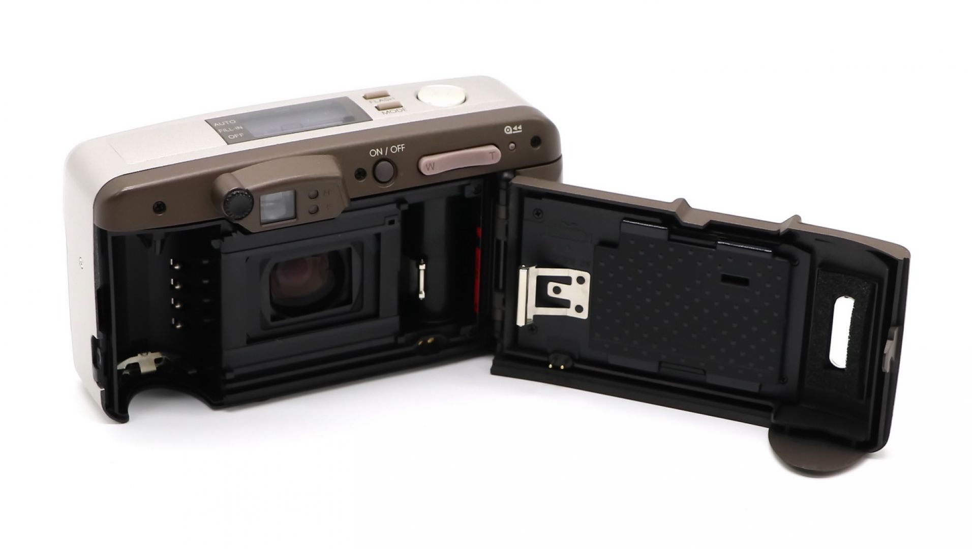 – Отличительные особенности: работа с 35мм плёнкой, зум-объектив 38-105 мм с плавной регулировкой. Отключаемая вспышка, функция установки даты, мультиэкспозиция (двойная экспозиция). Питание от батарейки CR123A, наличие штативного гнезда