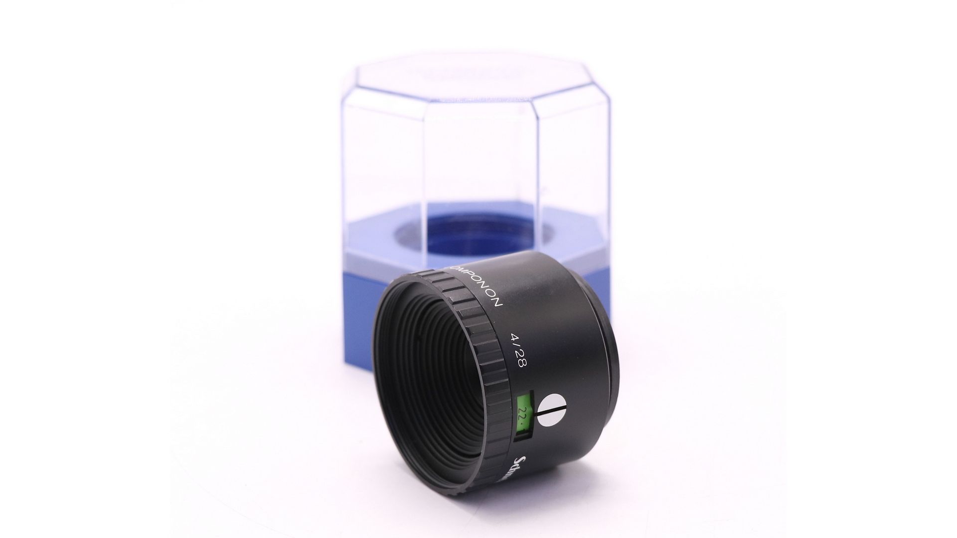 Schneider Kreuznach Componon 28mm f/4 – редкий широкоугольный объектив для увеличителей, созданный для профессиональной аналоговой печати. Оптика с 6-элементной схемой обеспечивает равномерную резкость по всему полю, включая края отпечатка.