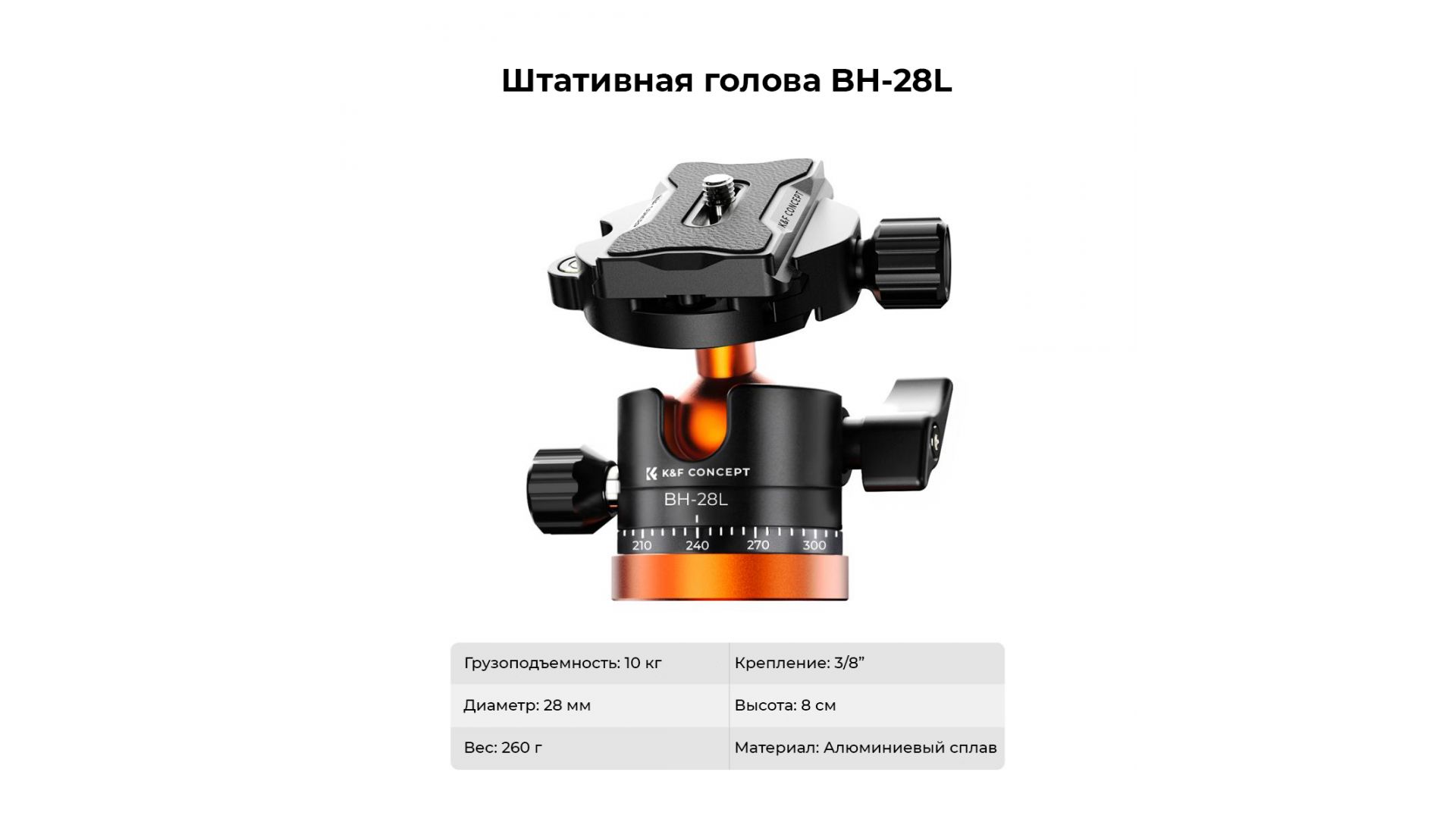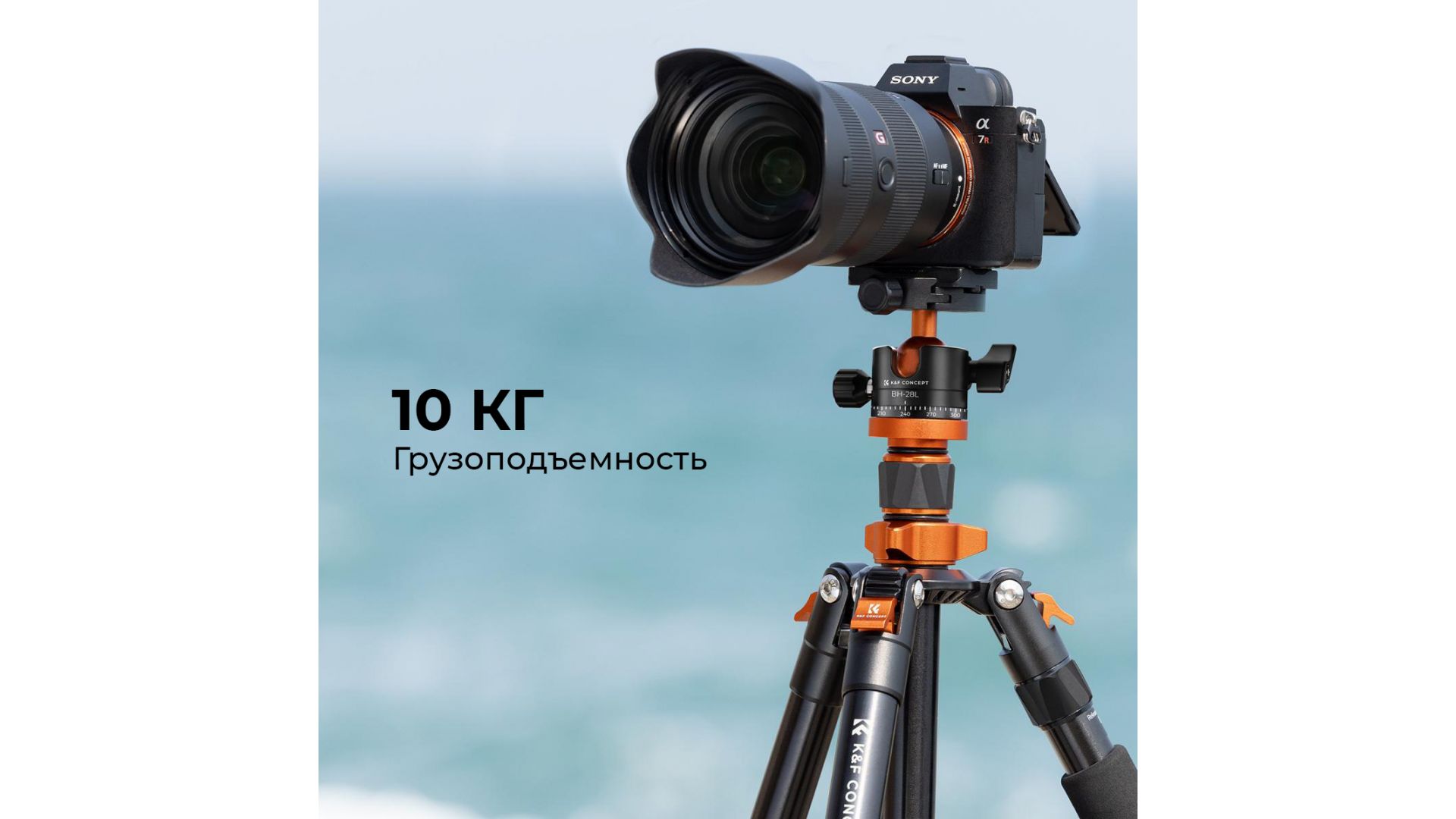 Максимальная грузоподъемность 10 кг — подходит для зеркальных камер и тяжёлой оптики