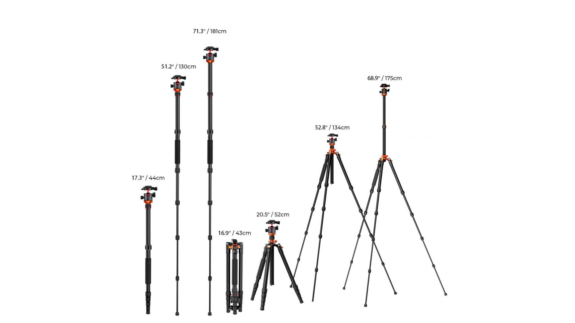 Высота до 172 см и компактная длина в сложенном виде 43 см