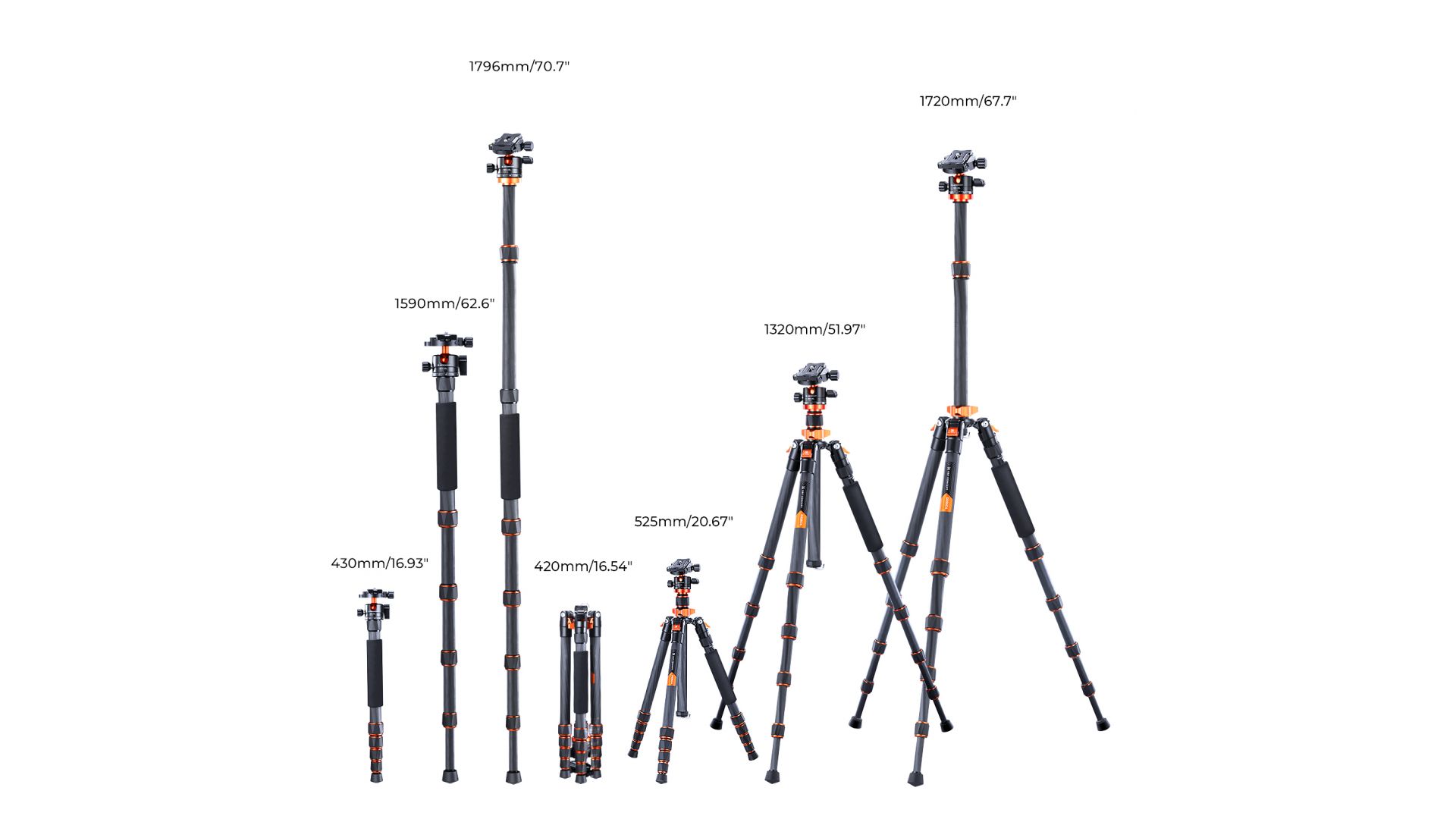 Регулировка 5-секционных ножек может увеличить высоту штатива от 42 см до 172 см, что в значительной степени соответствует требованиям фотографической высоты.