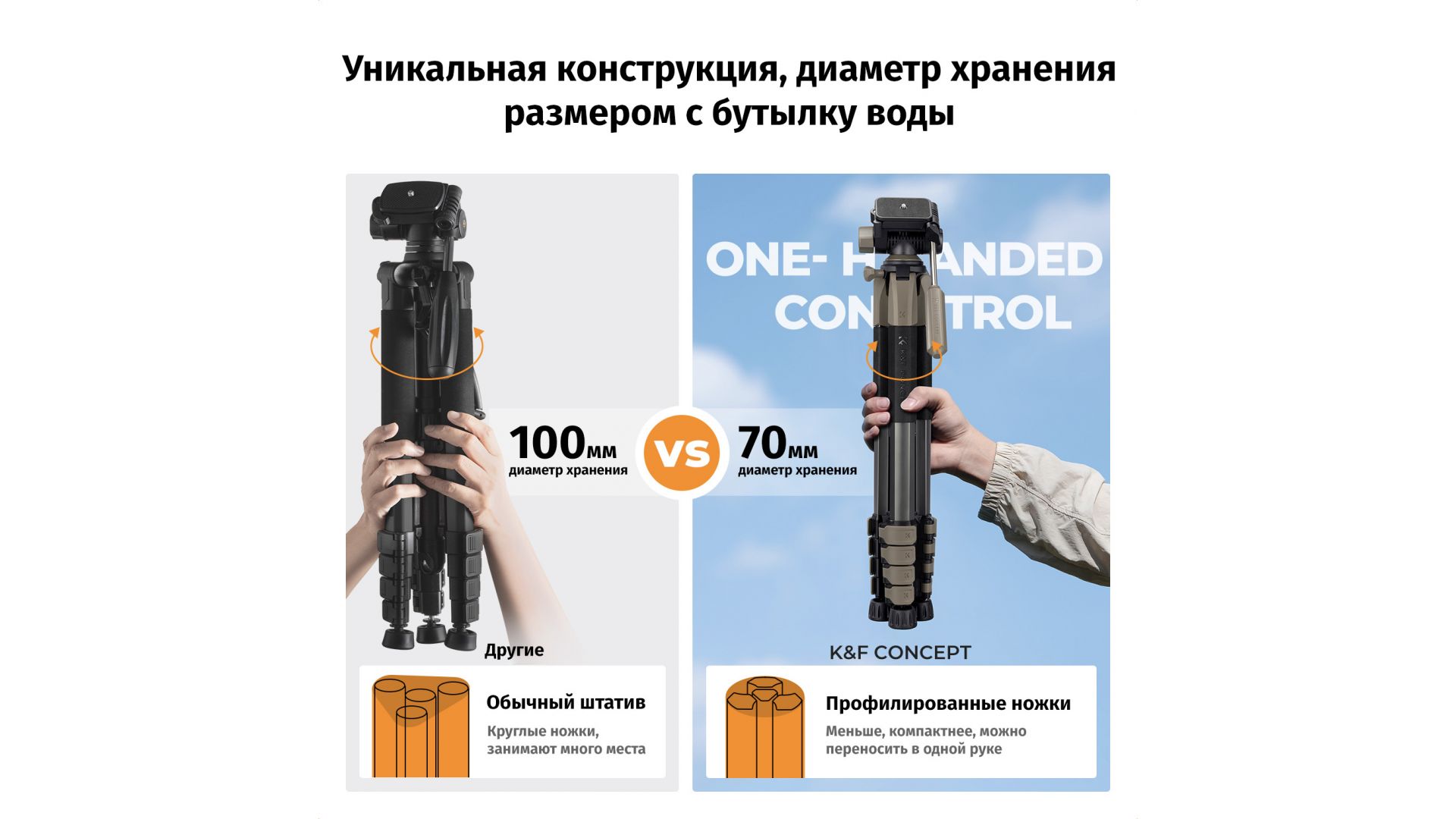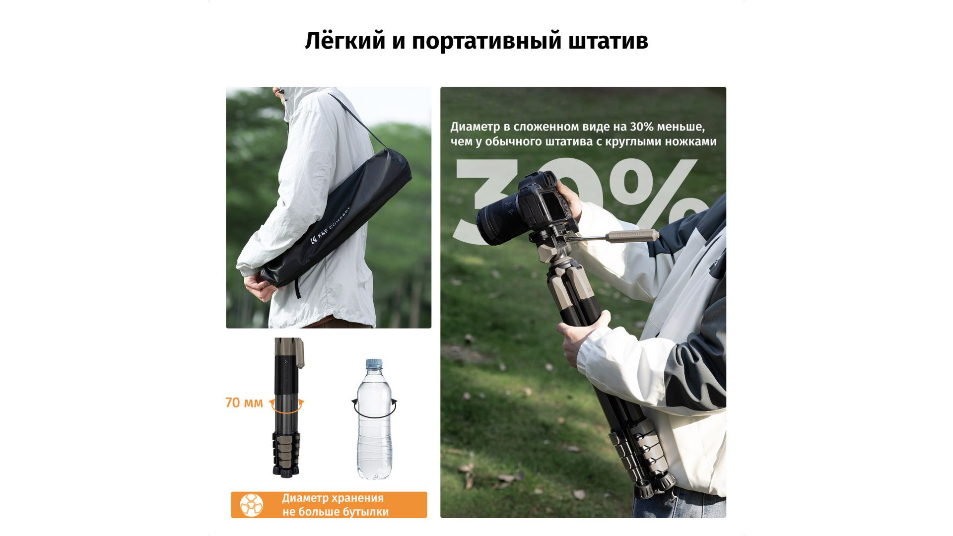Лёгкий и компактный штатив K&F Concept KF09.155 S255A3 + BV01 — ваш надёжный спутник в путешествиях и на съёмках. Вес всего 1,2 кг, а в сложенном виде он занимает лишь 50 см. Уникальная пятигранная конструкция трубок обеспечивает невероятную устойчивость и быстрый монтаж.