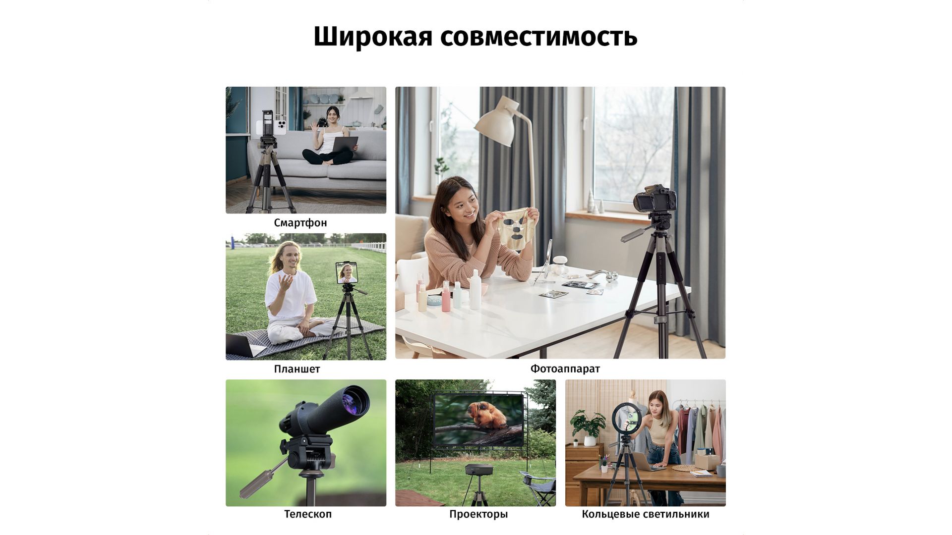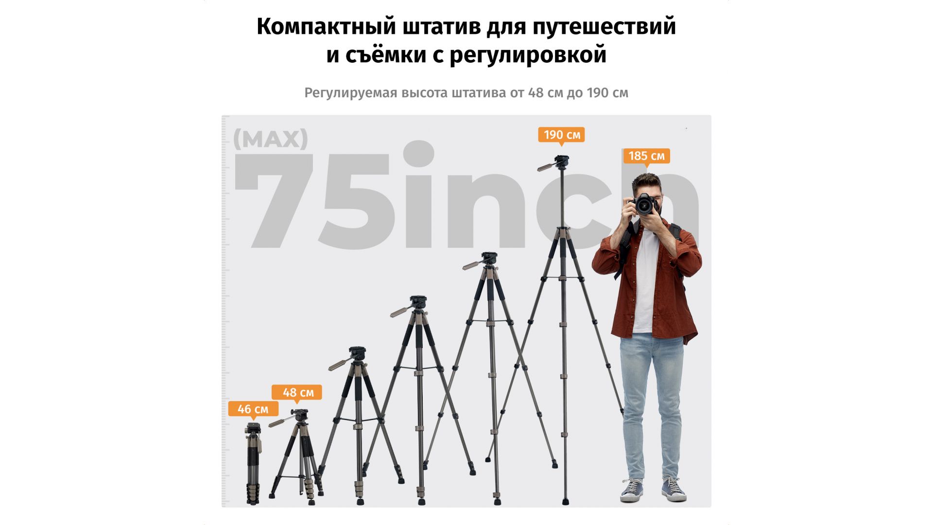Идеален для фото- и видеосъёмки, стримов, работы с камерой, смартфоном или проектором. Это профессиональная стабильность, готовая к любым приключениям.