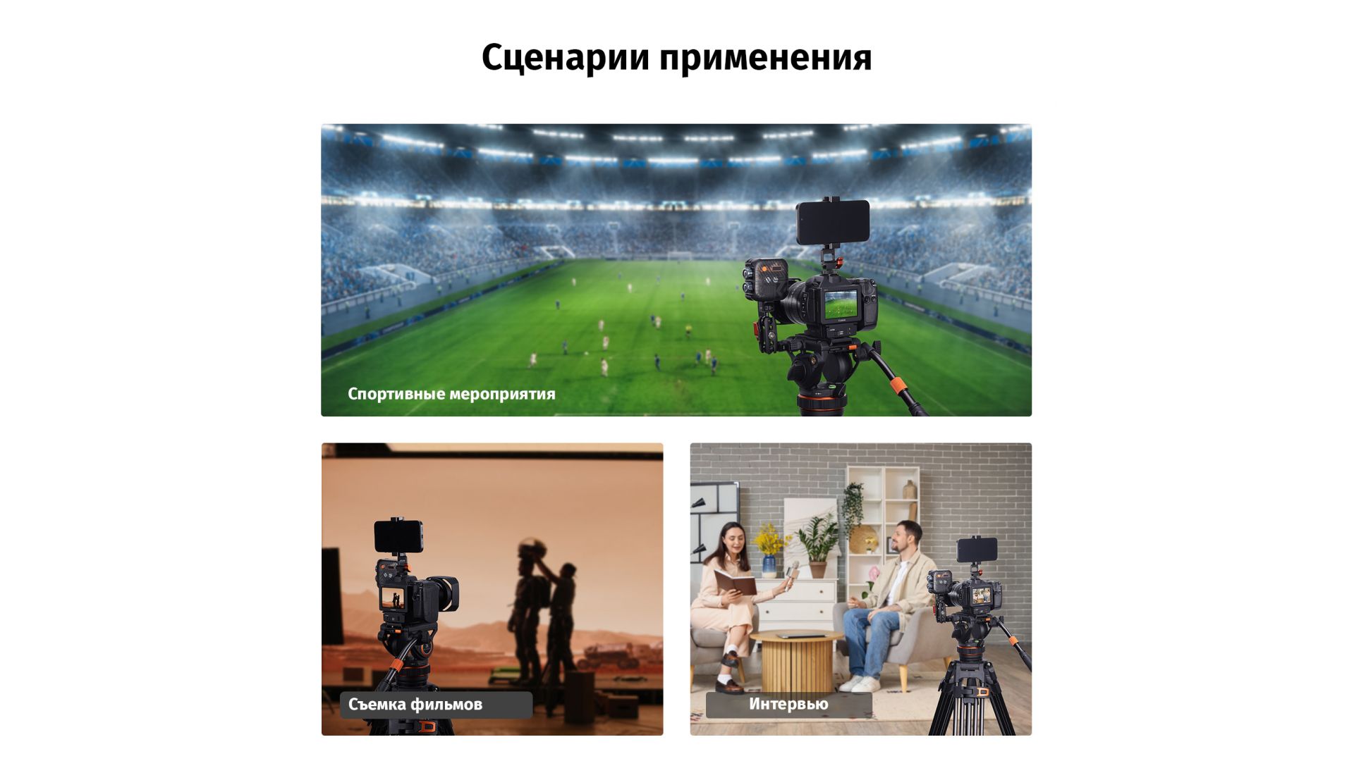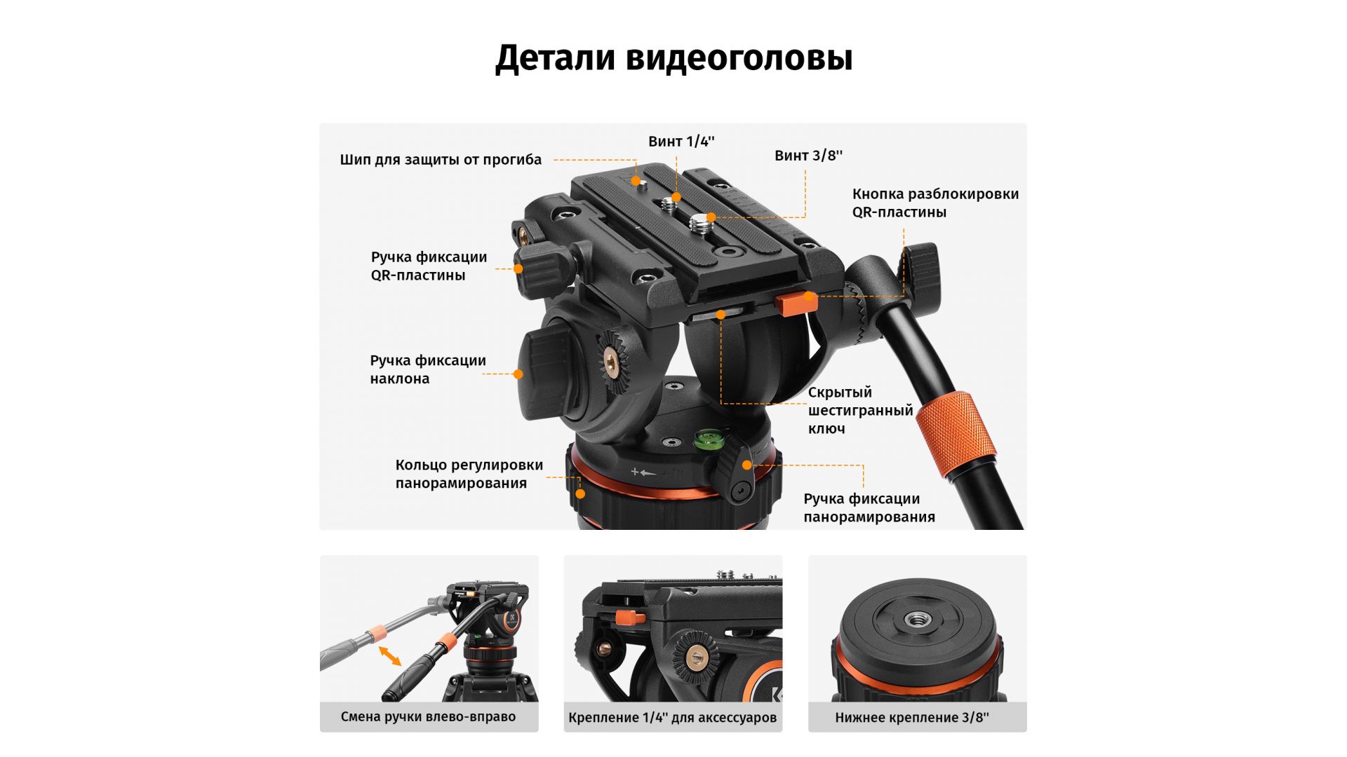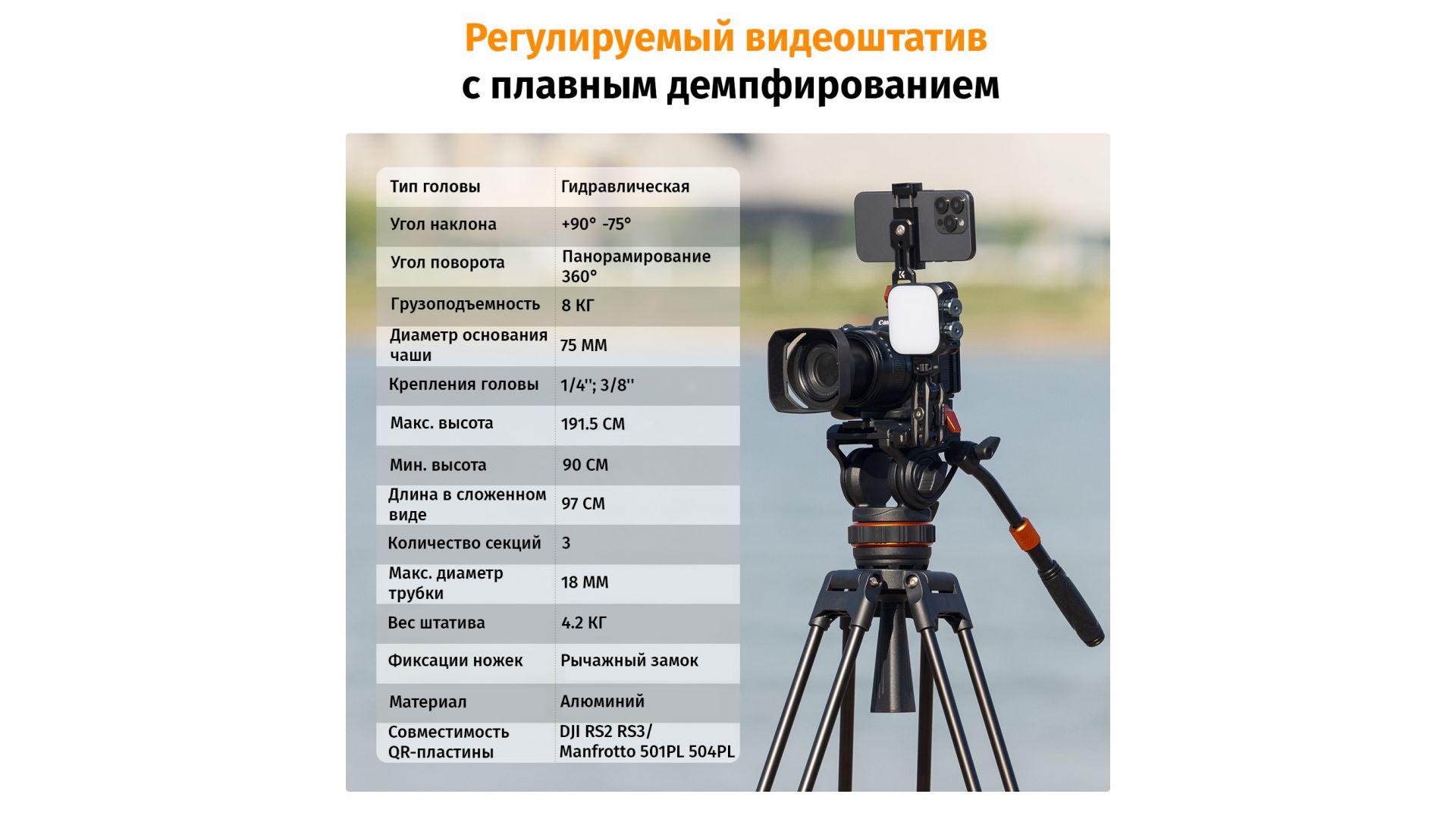 - Основание чаши а диаметром 75 мм обеспечивает широкий диапазон регулировки и стабильную поддержку, что подходит для тяжелых камер и объективов