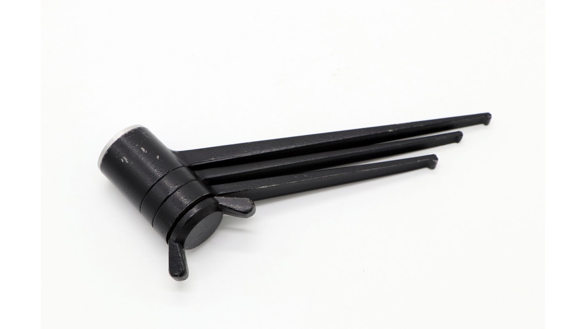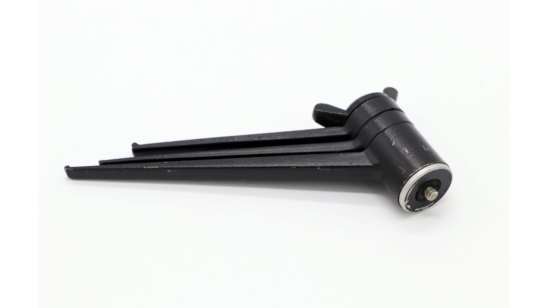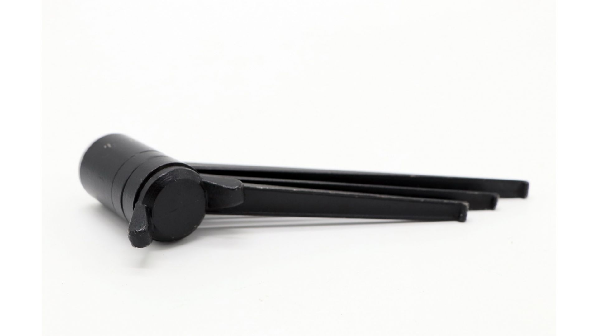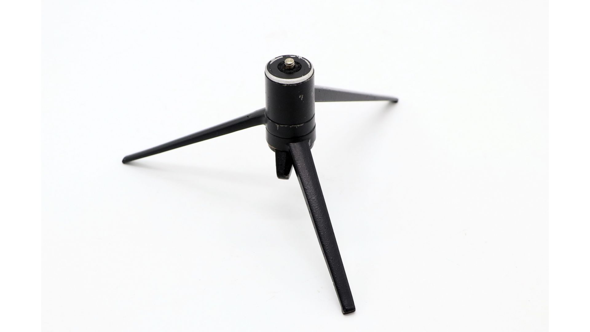 Высота в разложенном виде — 10 см. Устойчивая трёхногая металлическая конструкция для установки на стол или ровную поверхность. Складной механизм для удобного хранения и транспортировки.