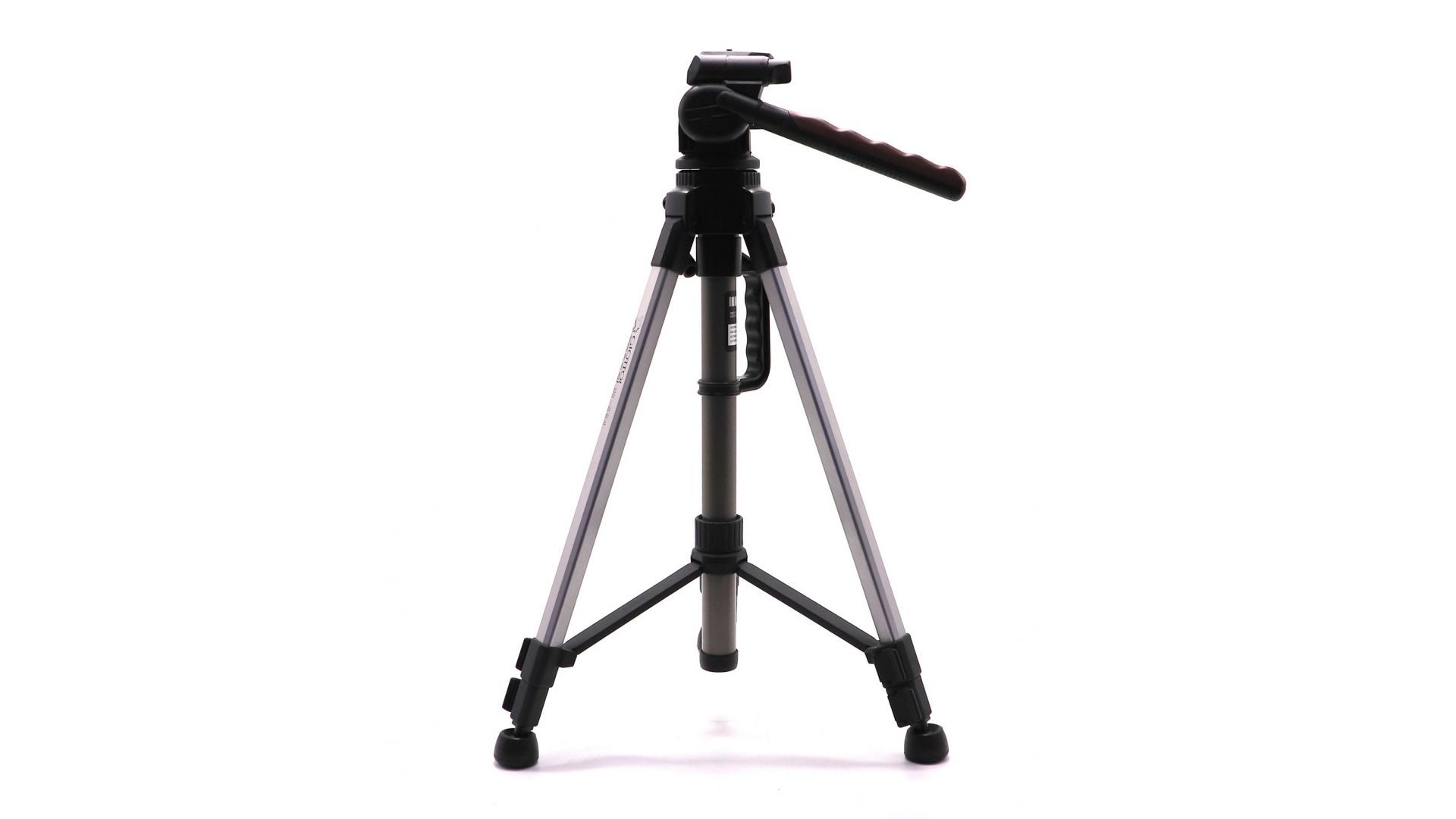 Штатив выполнен из алюминия, что обеспечивает ему достаточную жесткость при небольшом весе. Ноги штатива состоят из трех секций и оснащены защелками для быстрой фиксации. Высота штатива регулируется в широком диапазоне, позволяя вести съемку как с уровня пола, так и с высоты роста оператора.