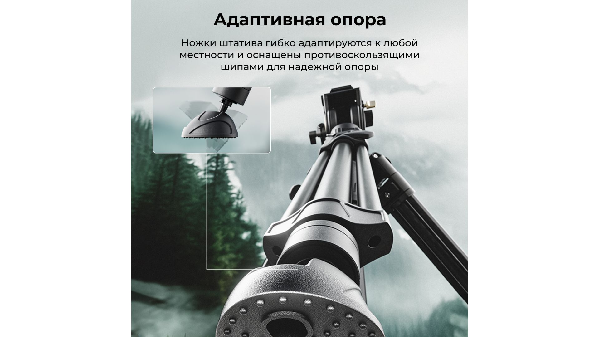 - Ноги и центральная колонна изготовлены из углеродного волокна и обеспечивают легкость и исключительную устойчивость конструкции