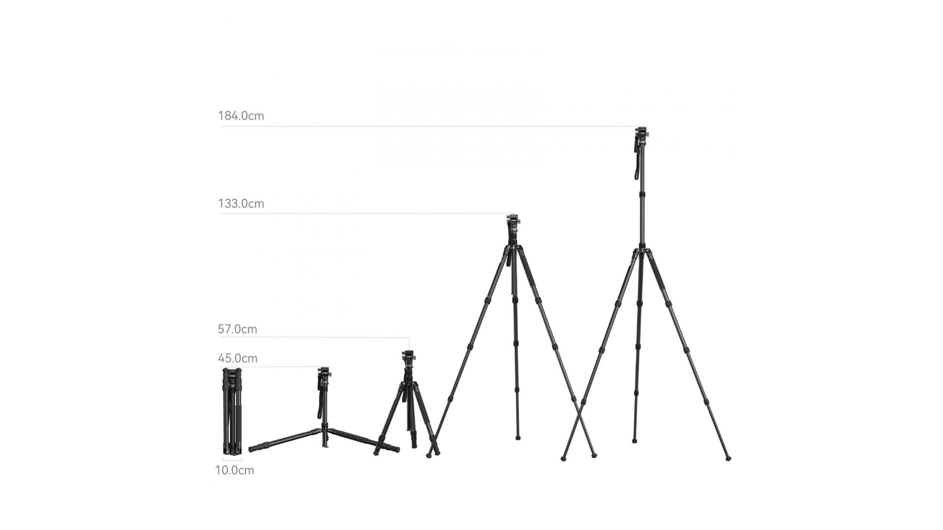 Он изготовлен из прочного и легкого алюминиевого сплава и достигает максимальной рабочей высоты 184 см с выдвинутой центральной колонной и складывается до 45 сантиметров в длину, что упрощает транспортировку в чехле, который идет в комплекте. Штативная головка расчитана на нагрузку до 4 килограмм, тогда как штативные ножки до 15 килограмм, что делает этот штатив идеальным для различных типов оборудования, от смартфонов до зеркальных фотоаппаратов и кинокамер.