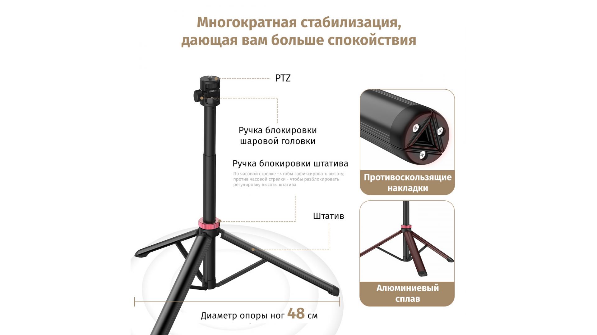 Новая модель от популярного бренда Ulanzi, сочетающая мобильность, устойчивость и функциональный дизайн. Отличный выбор для блогеров, путешественников и начинающих фотографов.