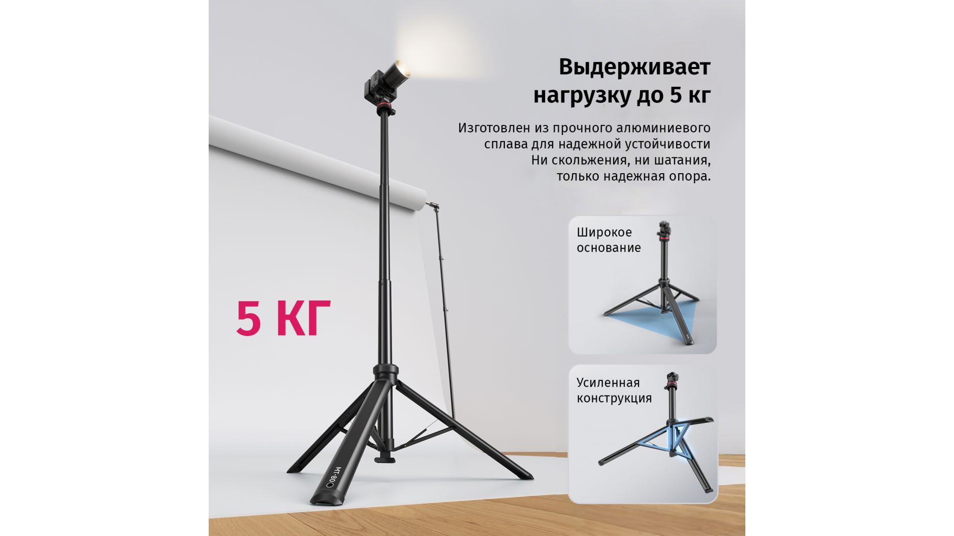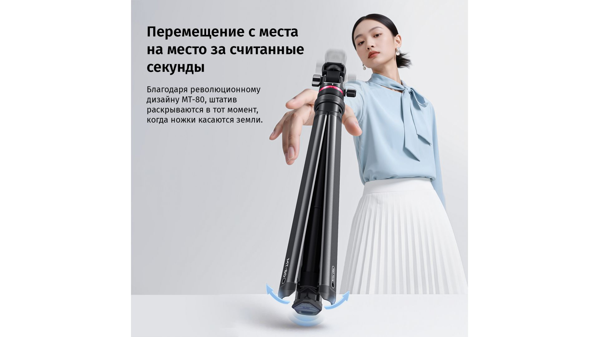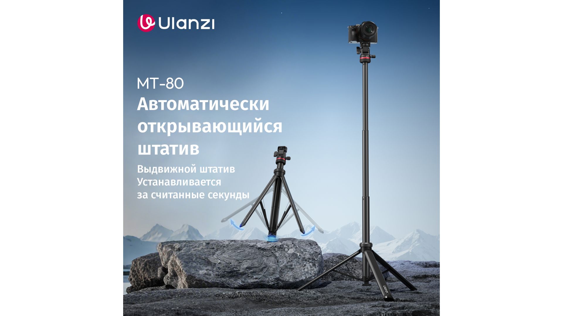 ULANZI MT-80 — это инновационная световая подставка и штатив с системой автоматического раскрытия ножек. Достаточно поставить его на землю, и ножки раздвинутся сами, что делает установку невероятно быстрой и безопасной для вашего оборудования.