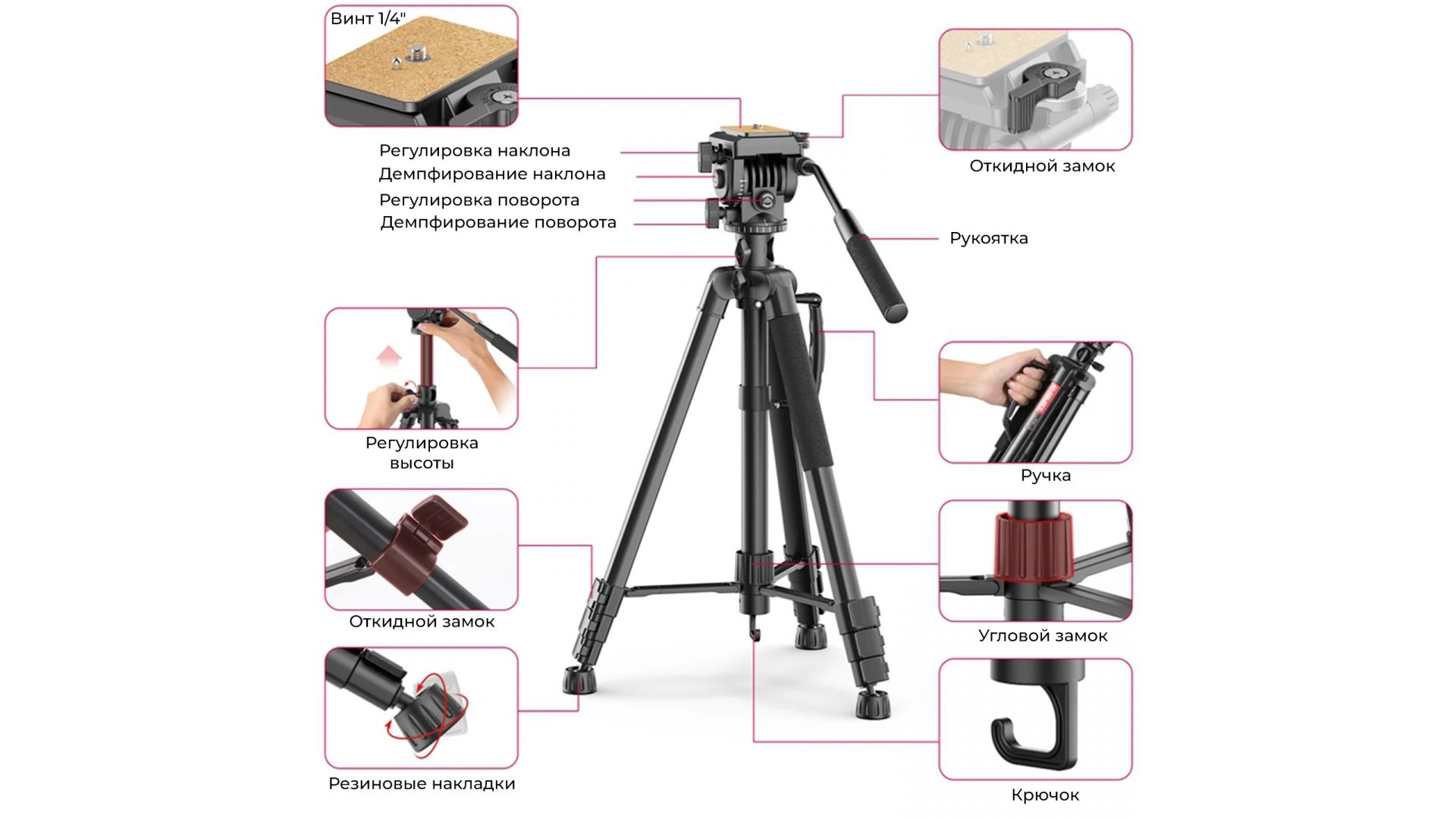 Максимальная высота монопода: 1610 мм