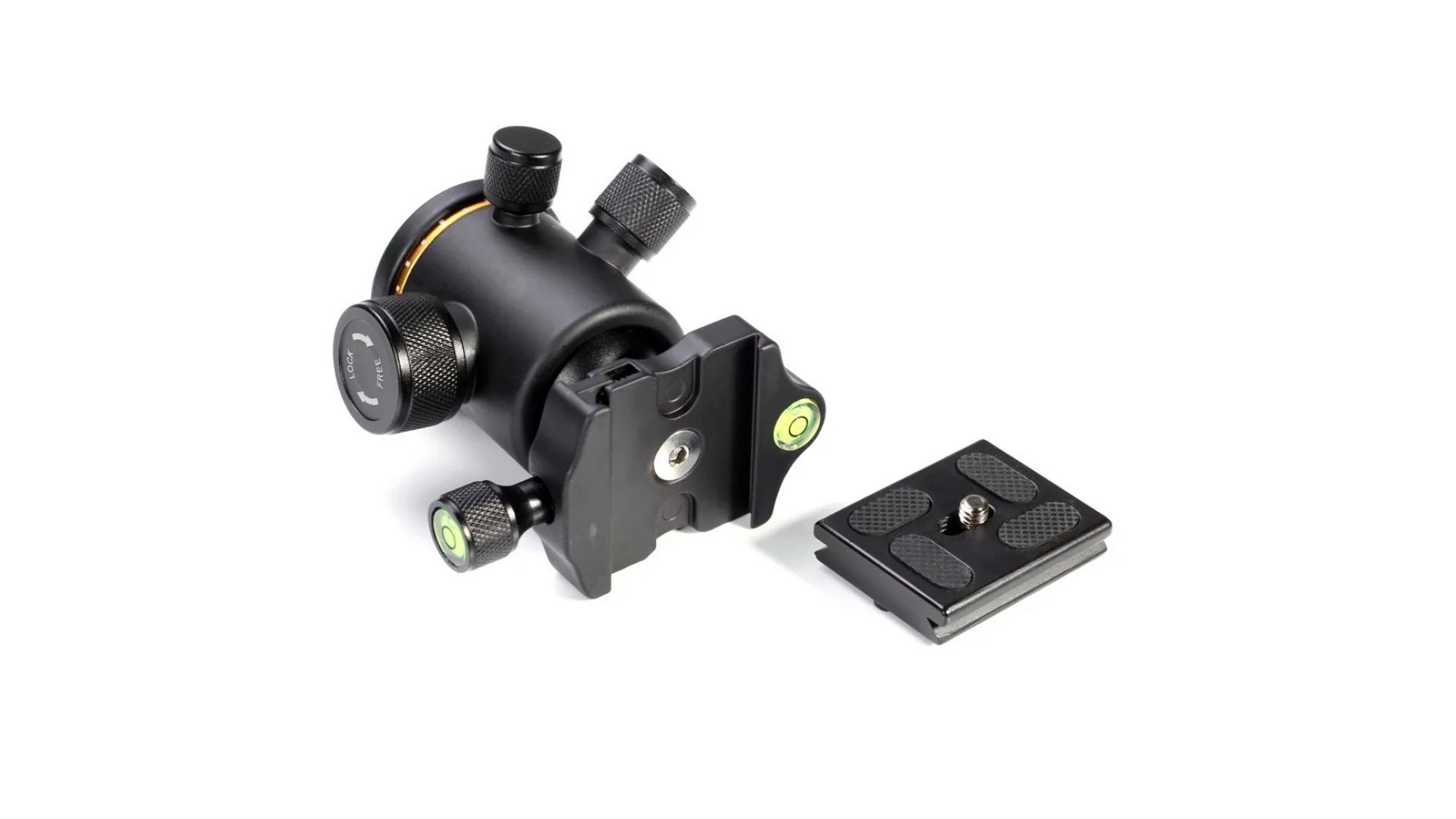 Профессиональная шаровая головка для штатива, изготовленная из прочного алюминиевого сплава, предназначена для работы с тяжелым фотооборудованием (грузоподъемность до 12 кг). Она обеспечивает надежную фиксацию и плавное движение для точного кадрирования. Ключевые особенности: встроенный пузырьковый уровень, горизонтальная ручка на 360°, шкала для панорам и две регулировочные ручки для интуитивного управления. Быстросъемная пластина с резьбой 1/4" обеспечивает моментальную установку и снятие камеры. Компактные размеры (высота 98 мм) и малый вес делают головку идеальным решением для мобильной съемки. В комплект входят сама головка и быстросъемная пластина.