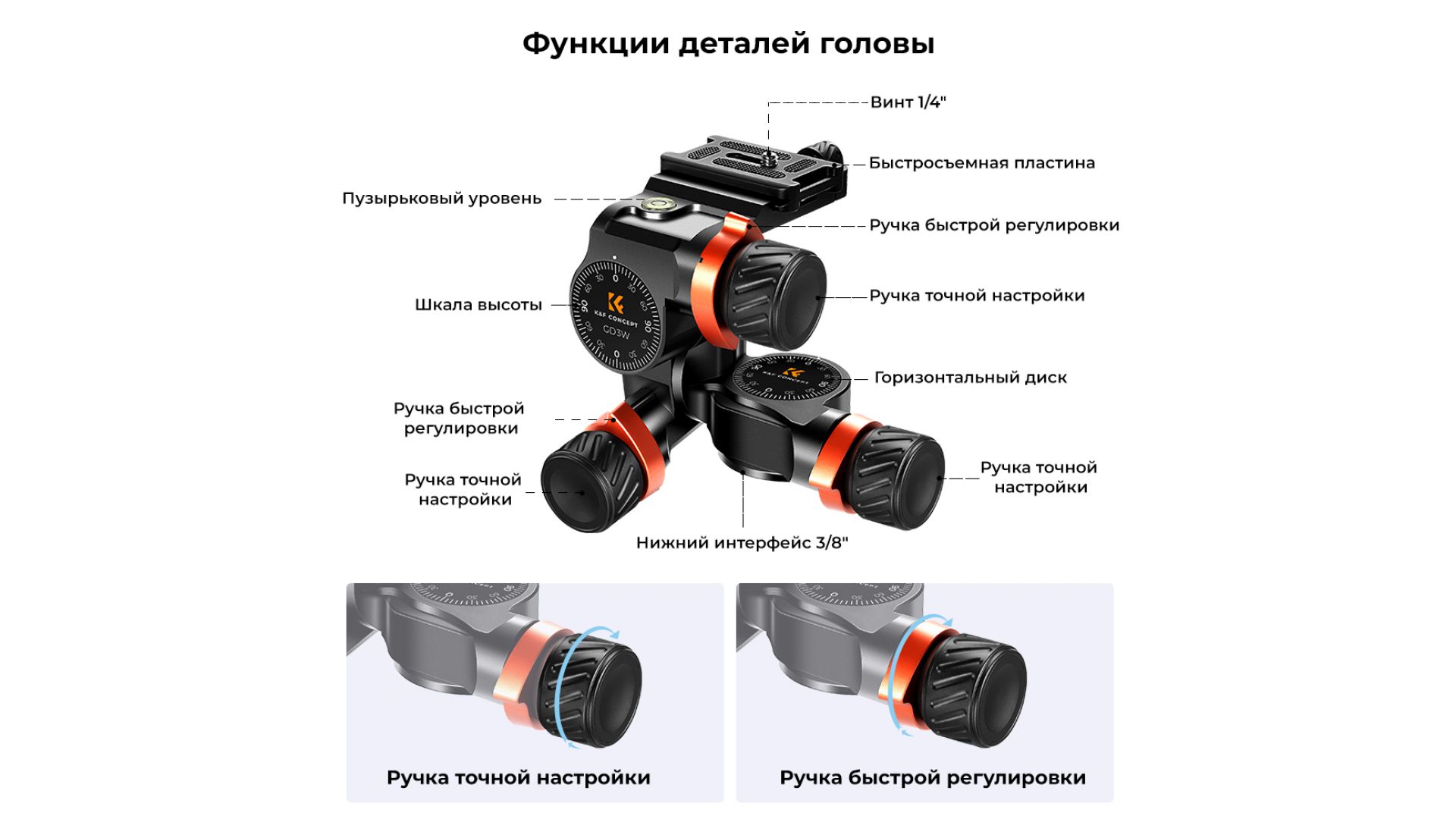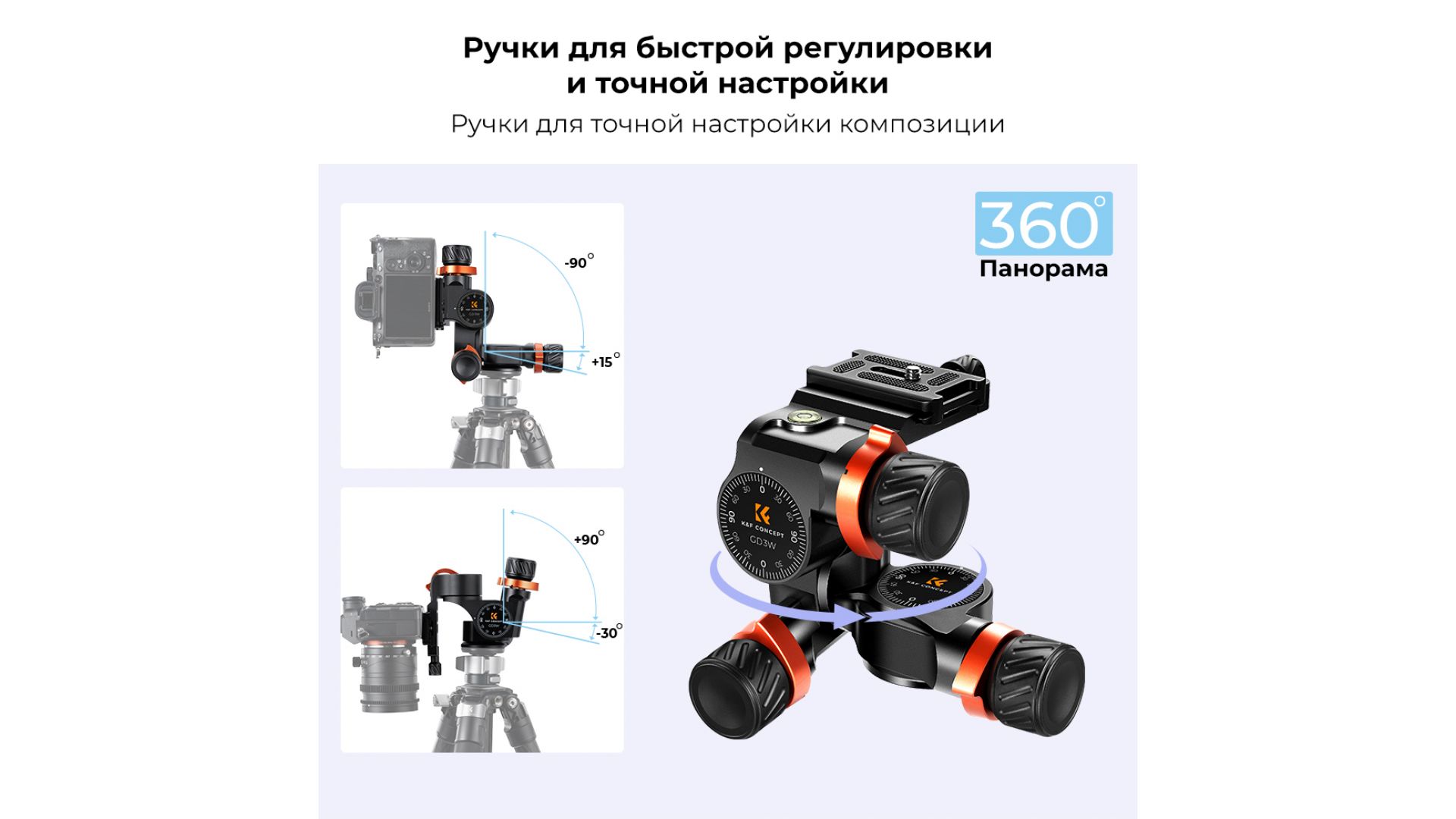 Штативная голова K&F Concept GD-3W Gear KF31.047