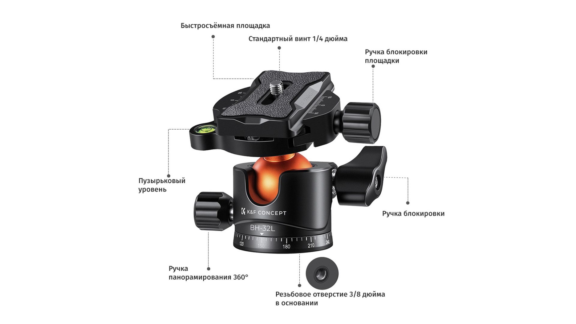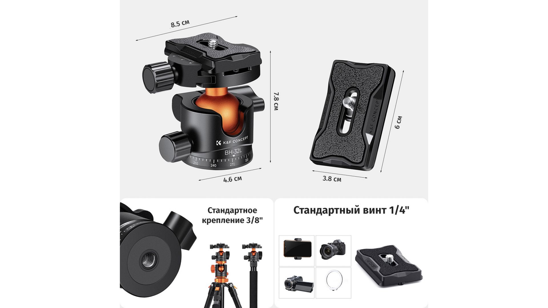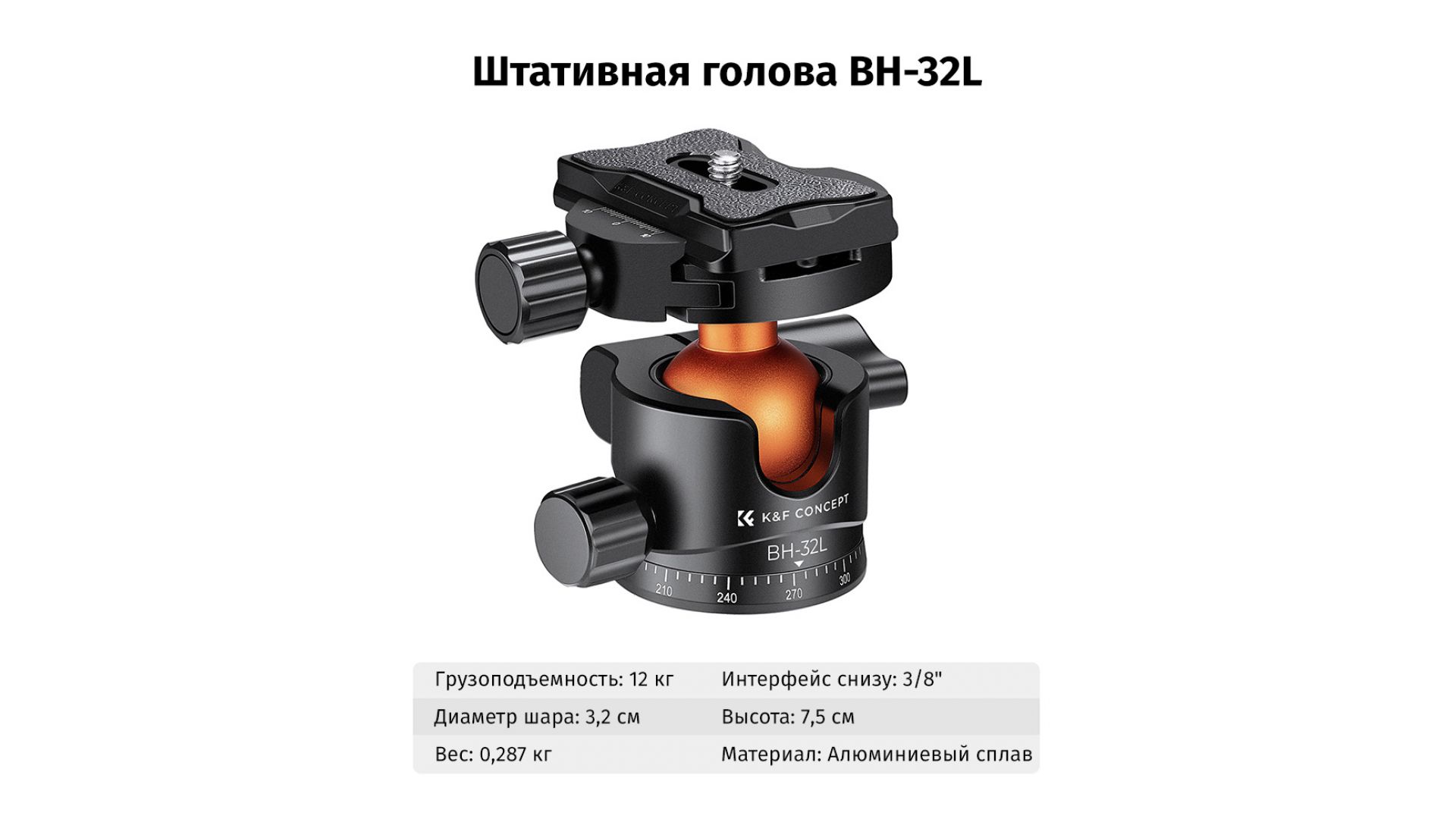 Комплектация:Штативная голова K&F Concept BH-32L KF31.042