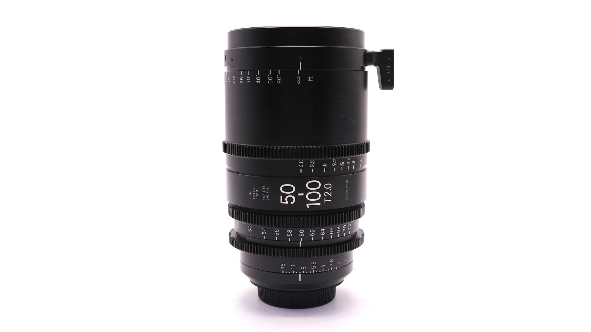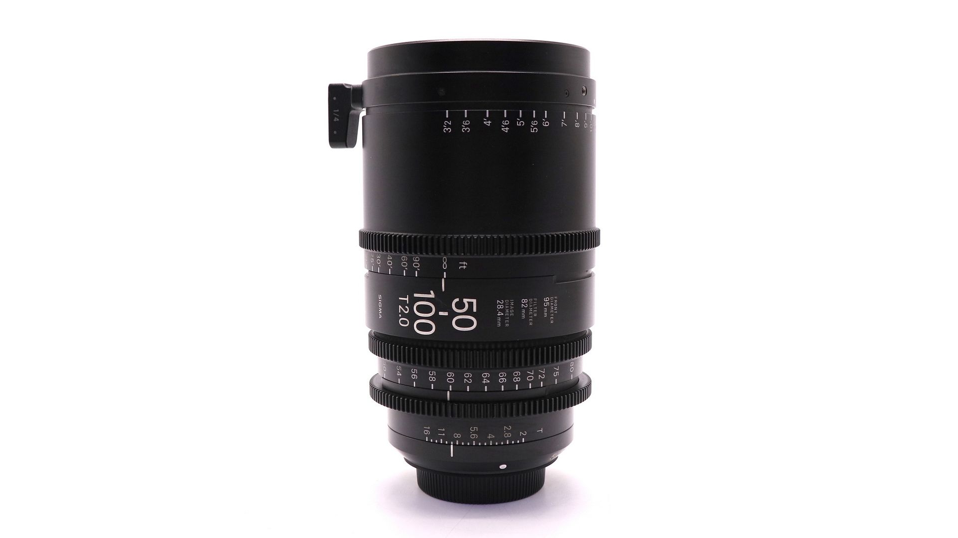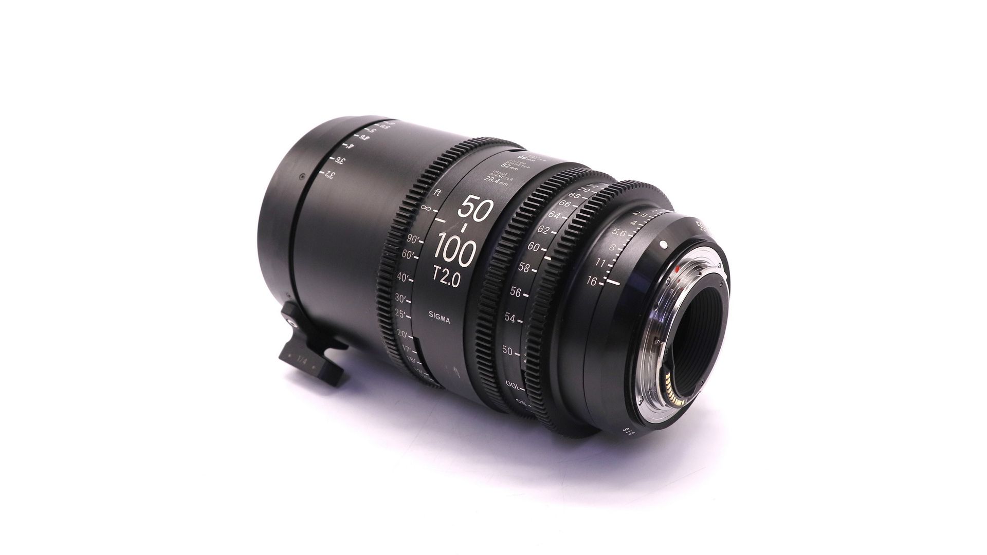 Sigma 50-100mm T/2.0 Canon EF - высокоскоростной зум-объектив, обеспечивает круг изображения, покрывающий датчики размера Super 35 мм. Он имеет максимальное значение T-stop 2, а диафрагма не выходит за пределы диапазона увеличения. Он имеет те же положения шестерен, что и другие объективы из линейки Sigma High Speed Zoom, что обеспечивает быструю замену объектива. 9-лепестковая диафрагма обеспечивает округлые расфокусированные участки для естественного боке. Тубус объектива может поворачиваться на 180 ° от близкого фокуса до бесконечности, тубус зума поворачивается на 160 °, а кольцо диафрагмы без щелчка имеет поворот на 60 °. Все три кольца управления объективами оснащены стандартными для кинематографа шестернями 0.8 Mod, а шкала фокусировки отмечена в метрах. Передняя часть объектива имеет диаметр 95 мм со съемной опорой 1/4 "-20 дюймов, которая помогает поддерживать объектив с помощью стержневой опоры для объектива 1/4" -20 (не входит в комплект).