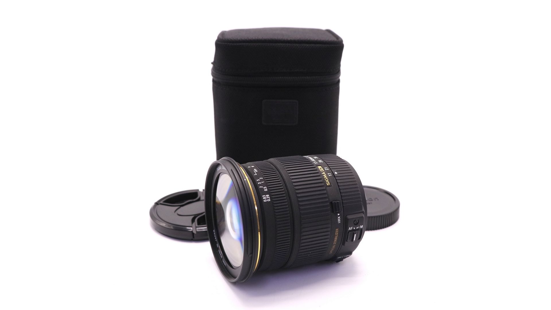 Высокая постоянная светосила, 4-ступенчатый оптический стабилизатор, 2 элемента из FLD-стекла, аналогичного по характеристикам флюоритовому, 3 асферические линзы, ультразвуковой привод HSM, внутренняя фокусировка, минимальная дистанция фокусировки 28 см. Внутренняя система фокусировки исключает вращение передней линзы, что дает возможность использования лепестковой бленды и поляризационных фильтров. Высококачественный зум для любых жанров и сюжетов съемки от пейзажей и интерьеров до портретов с эффектно размытым фоном.