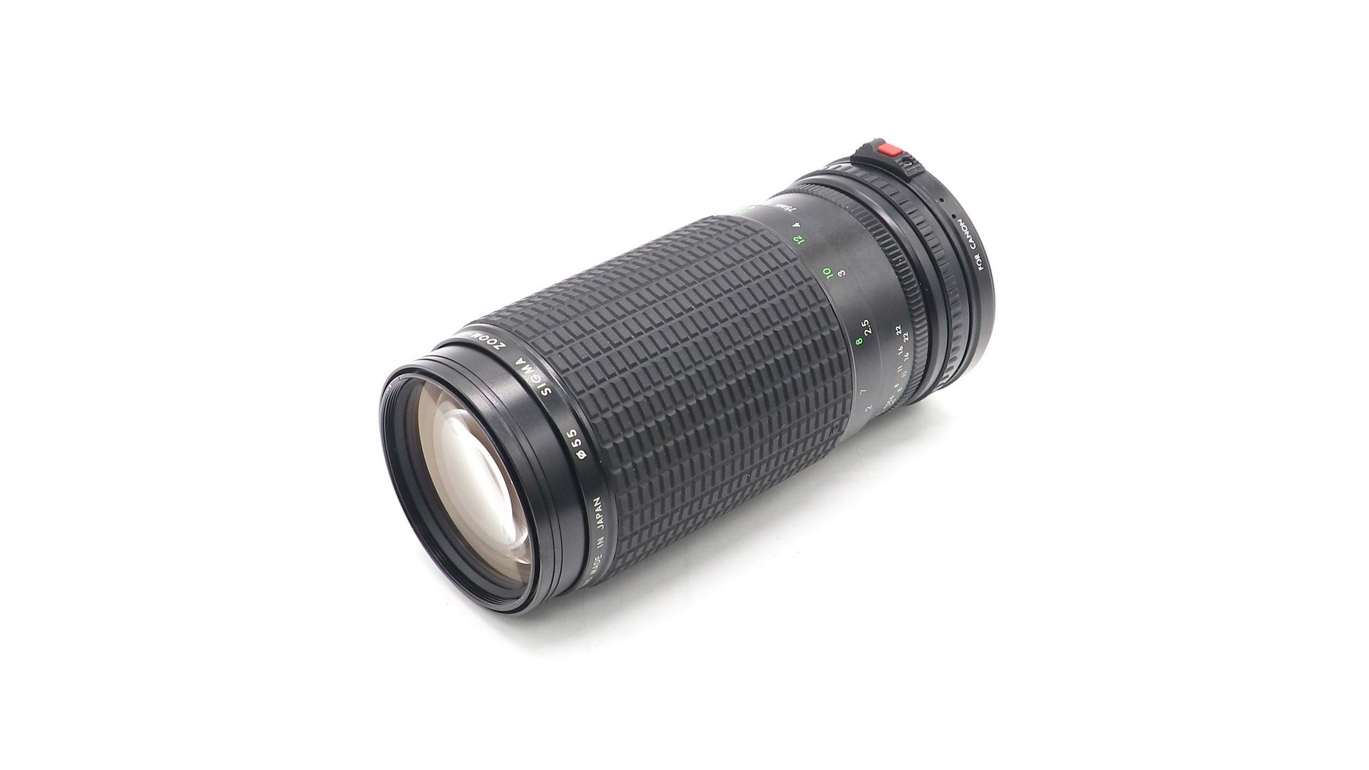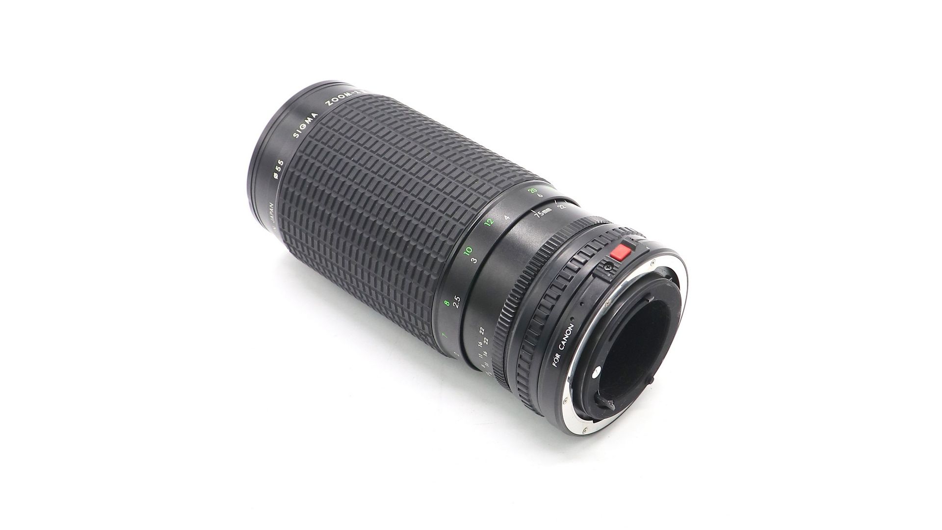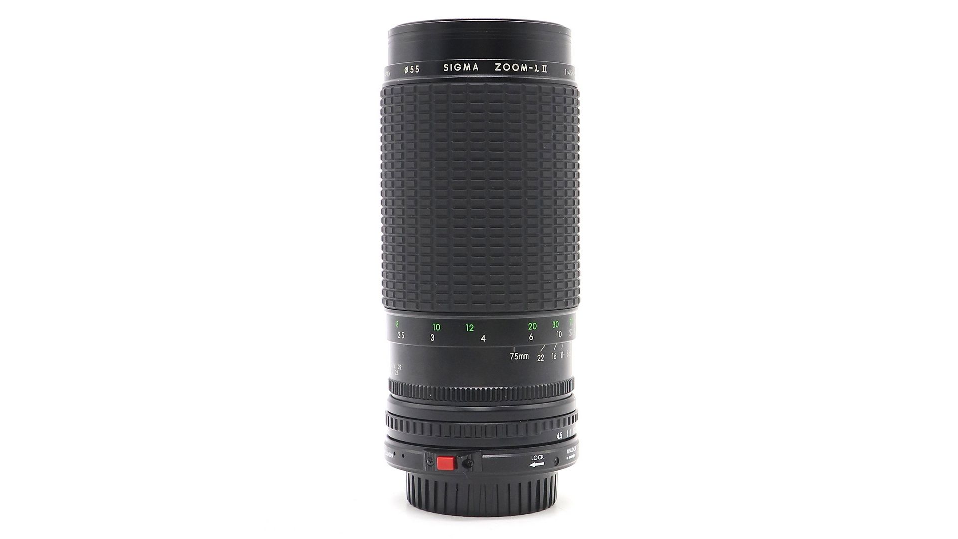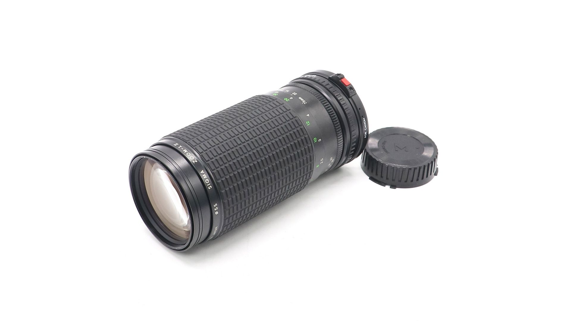 Длиннофокусный мануальный объектив с переменным фокусным расстоянием и мультипросветлением Sigma MF 75-300mm f/4.5-5.6 MC Zoom-Lambda II for Canon FD в хорошем внешнем состоянии. Присутствуют следы влаги и грибок внутри объектива. В комплекте задняя крышка. Использовался для 35-мм зеркальных фотоаппаратов популярных неавтофокусных систем 70-80-х годов.