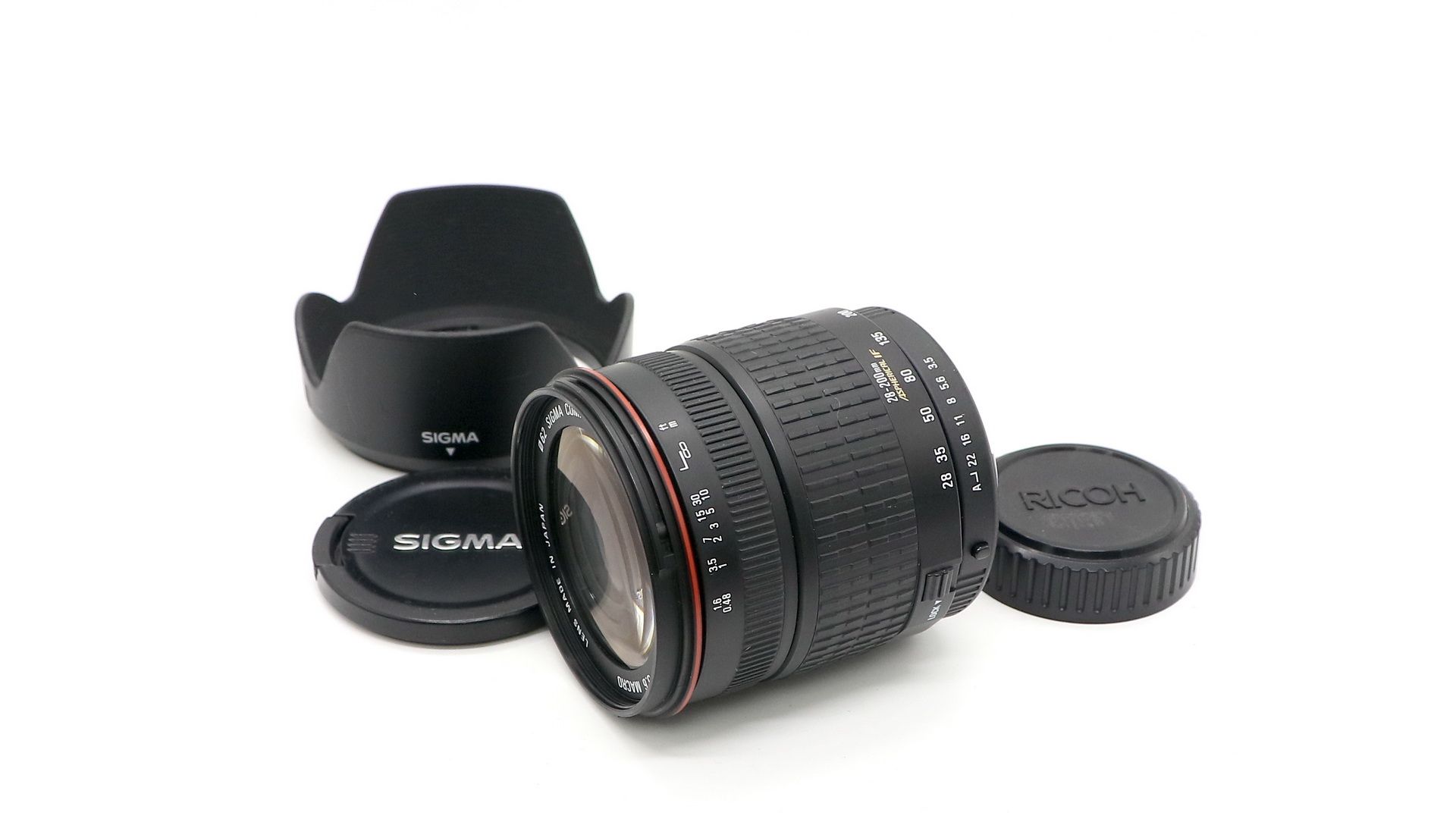 Объектив Sigma Zoom 28-200mm f/3.5-5.6 Macro в отличном внешнем состоянии, однако присутствует конденсат на одной из линз. В комплекте крышки, бленда.