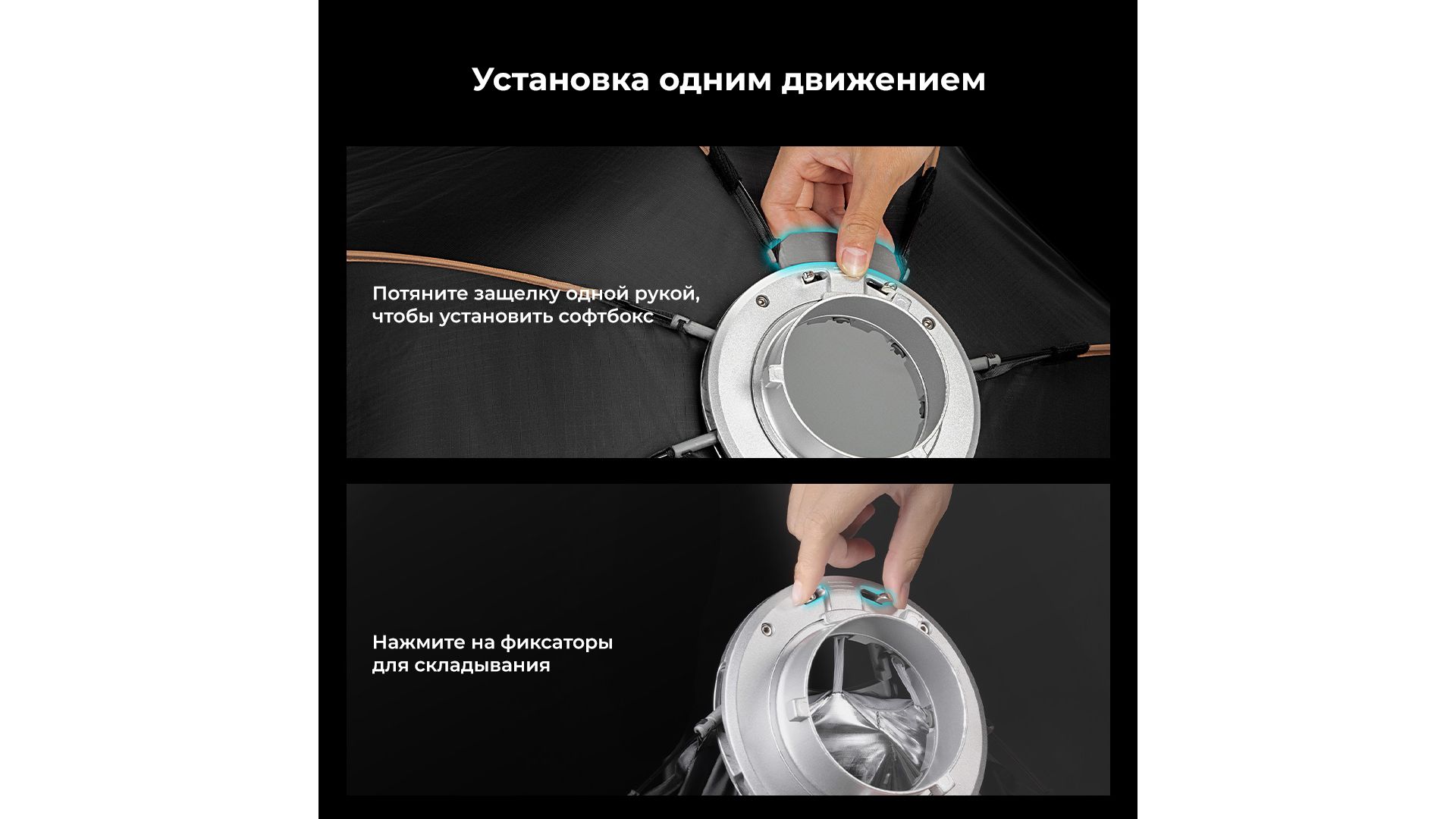 Благодаря системе быстрого высвобождения можно мгновенно собрать и сложить софтбокс LA-O90, обеспечивая максимальное удобство и экономию времени при каждой съемке. Независимо от того, работаете ли вы в студии или на выезде, вы сможете оперативно настроить оборудование без лишних усилий и задержек.