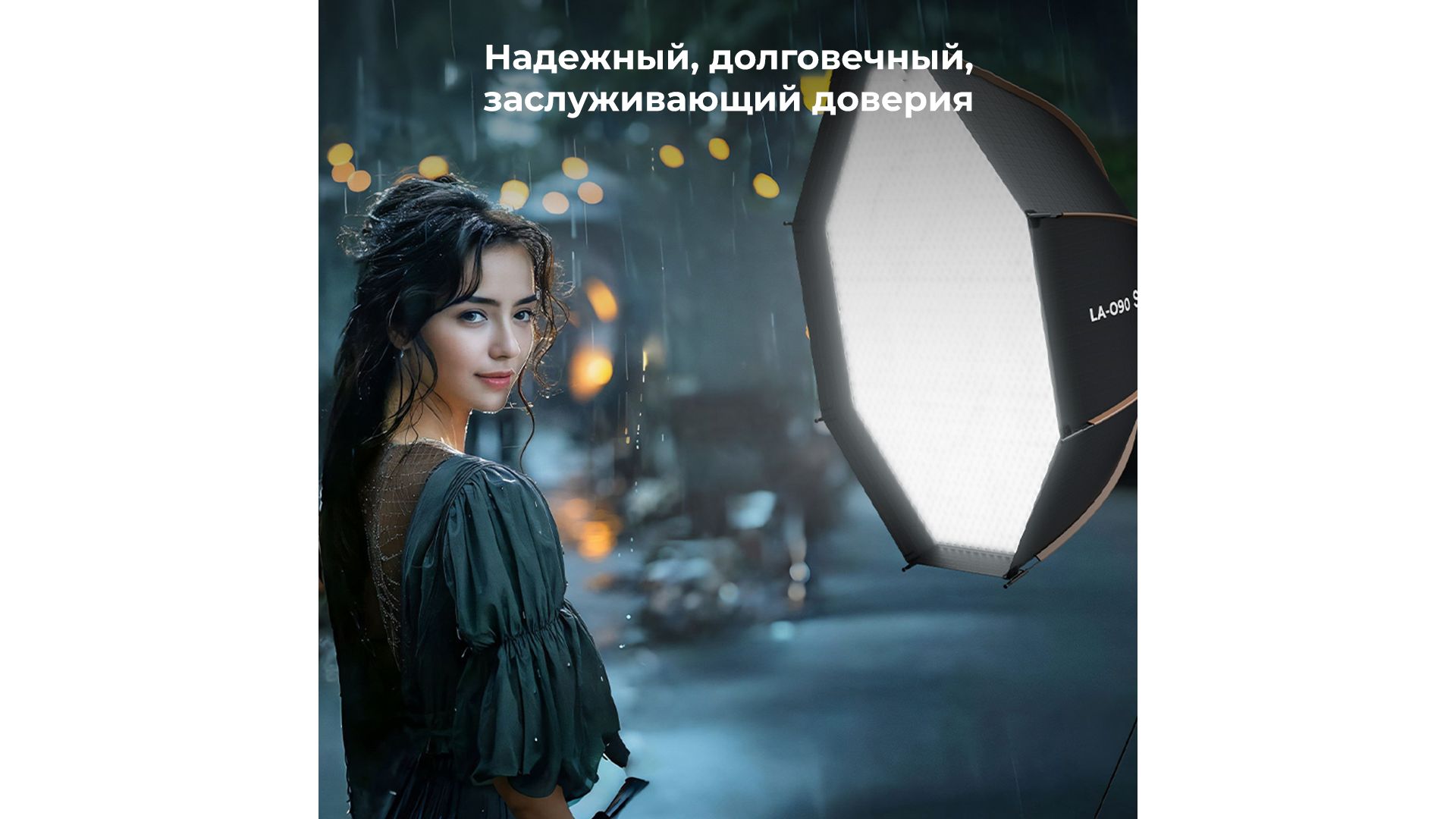 Изготовленный из премиальных материалов, софтбокс отличается прочностью и легкостью. Нержавеющие стальные ребра обеспечивают долговечность конструкции, а вес всего 900 граммов делает его удобным для транспортировки.