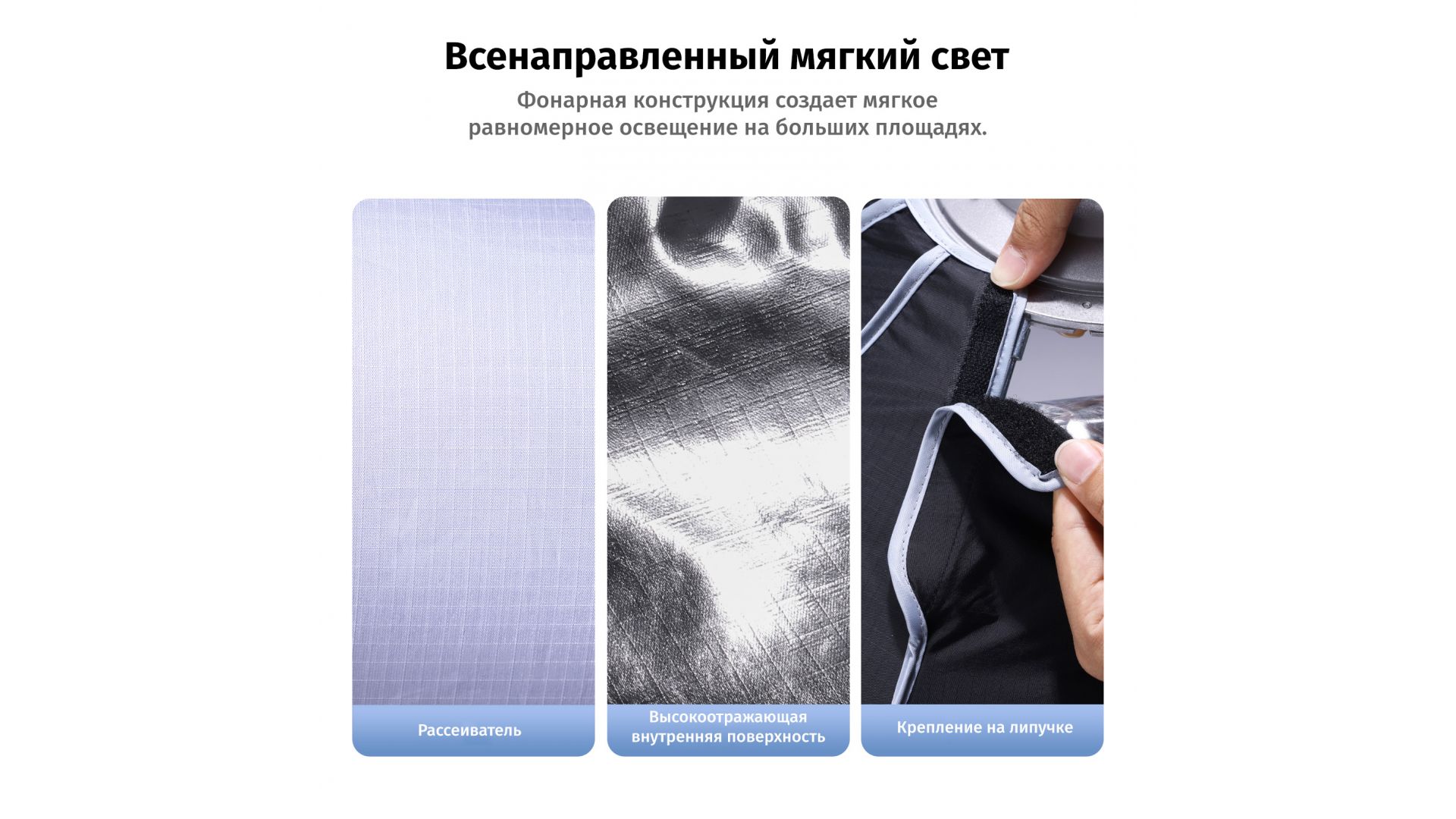 Комплектация:Софтбокс, рассеиватель, соты, чехол
