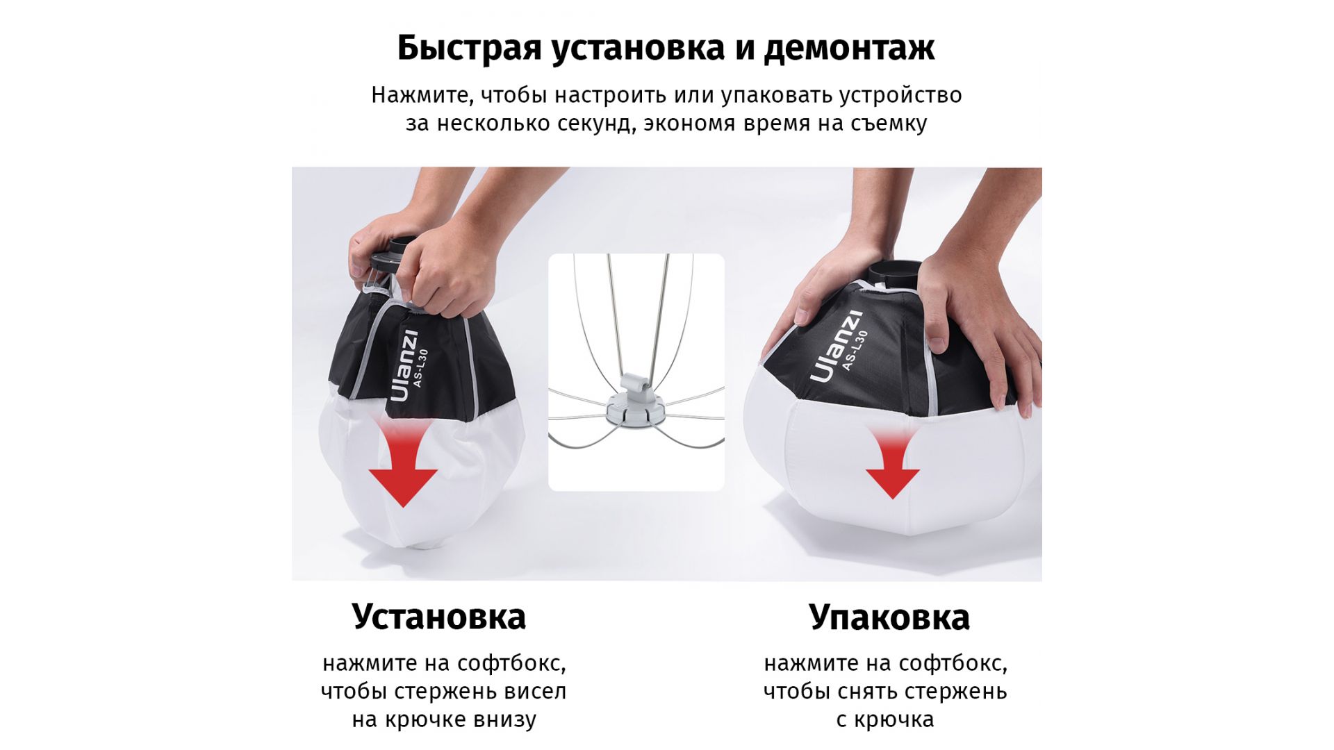 Забудьте о сложной сборке! Софтбокс Ulanzi с креплением Mini Bowens — это революция в работе с COB-светом. Мгновенная установка одним щелчком экономит ваше время и нервы на съёмочной площадке. Больше не нужно бороться с зажимами — просто нажмите кнопку и работайте.