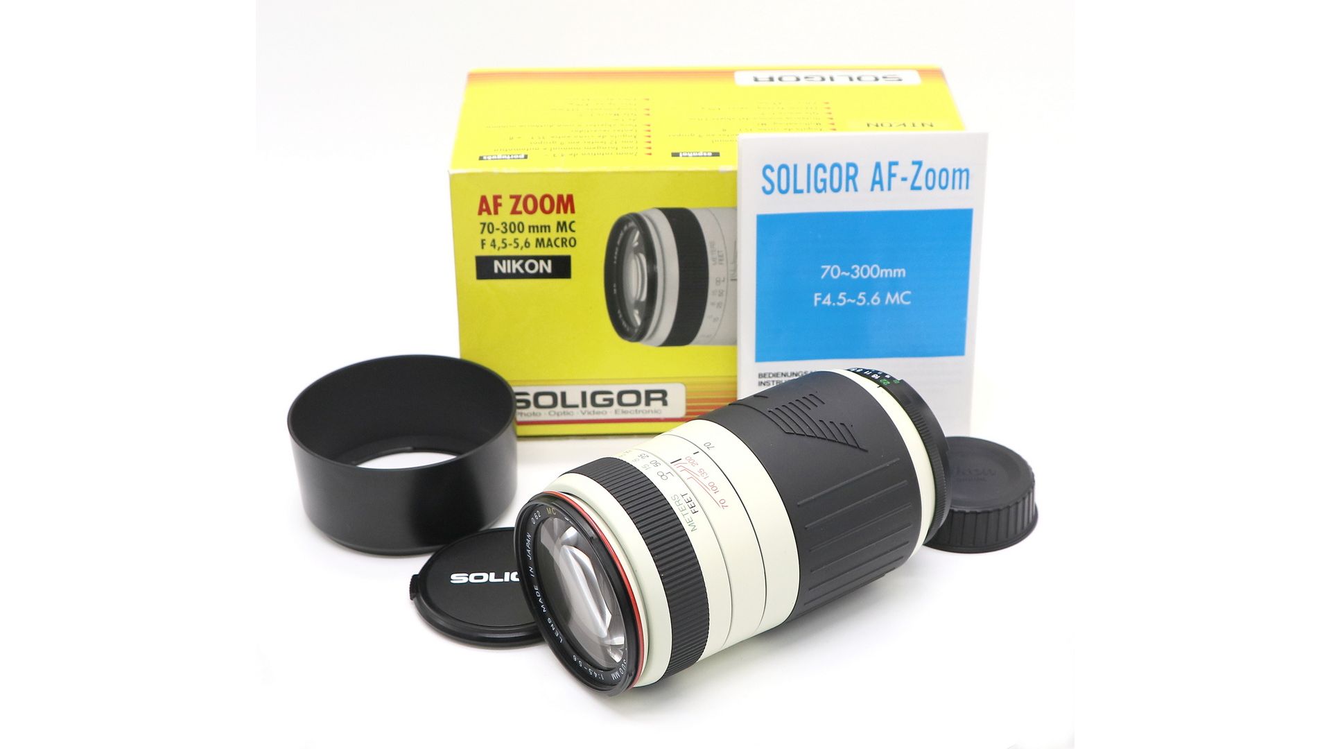 Длиннофокусный объектив Soligor 70-300mm f/4.5-5.6 AF Zoom MC for Nikon F в отличном состоянии. В комплекте упаковка, документы, крышки и бленда.