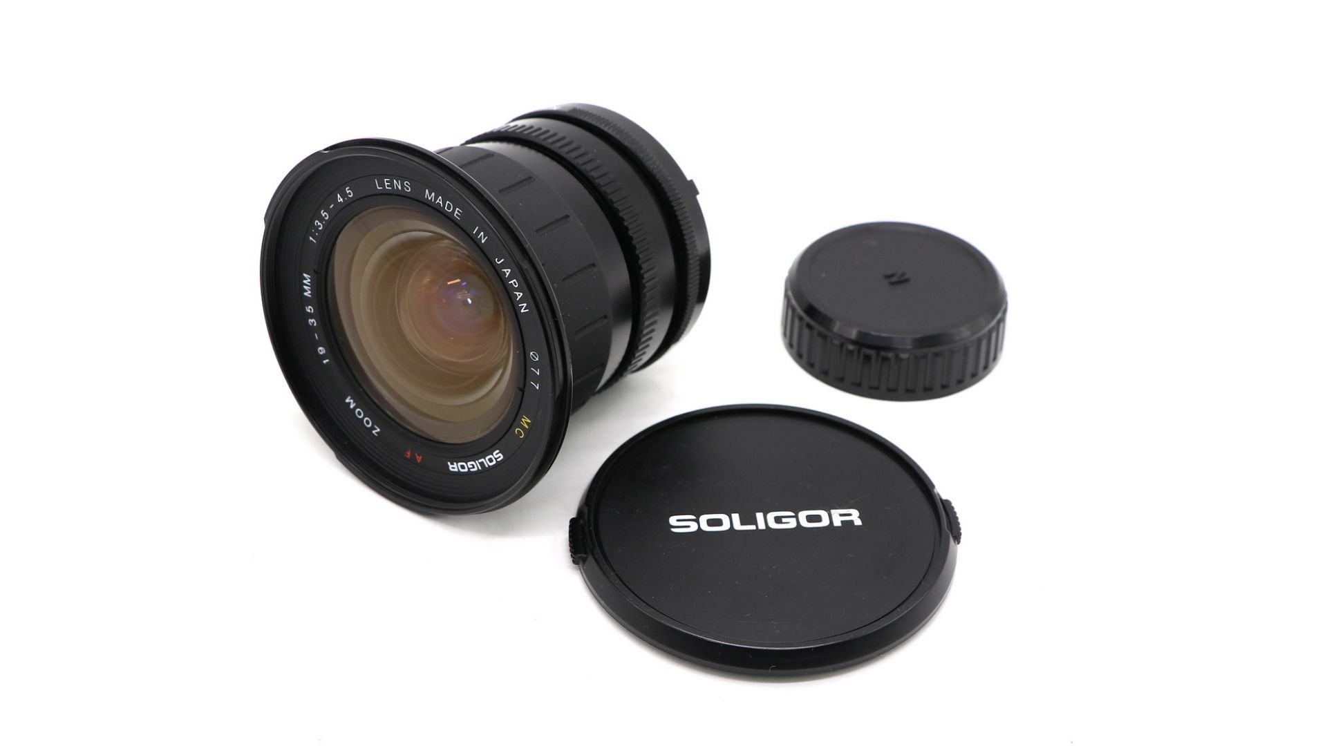 Soligor AF Zoom 3.5-4.5/19-35mm МС в хорошем состоянии (присутствуют небольшие следы эксплуатации на корпусе). В комплекте крышки. Производитель Япония.