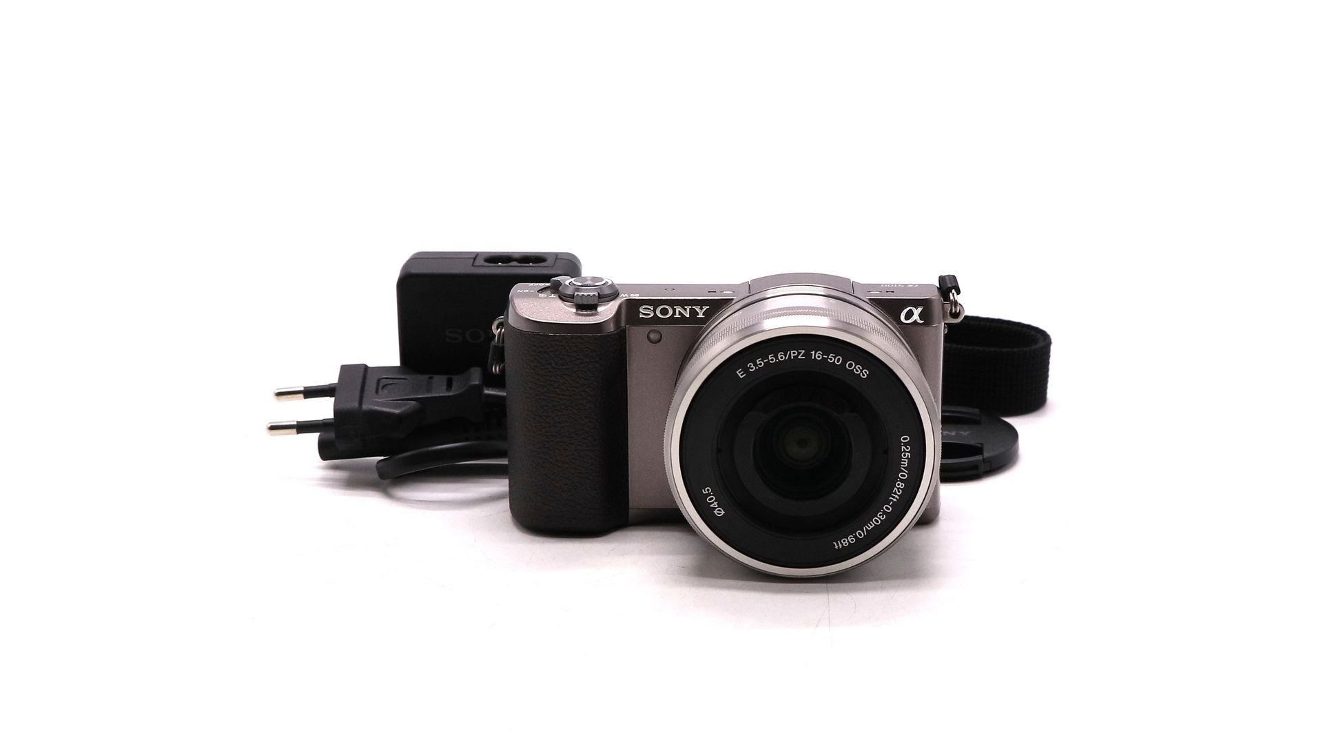 Комплектация:Объектив Sony 16-50mm f/3.5-5.6 OSS, аккумулятор, ремень, крышка объектива, адаптер питание от сети (кабель micro USB отсутствует).