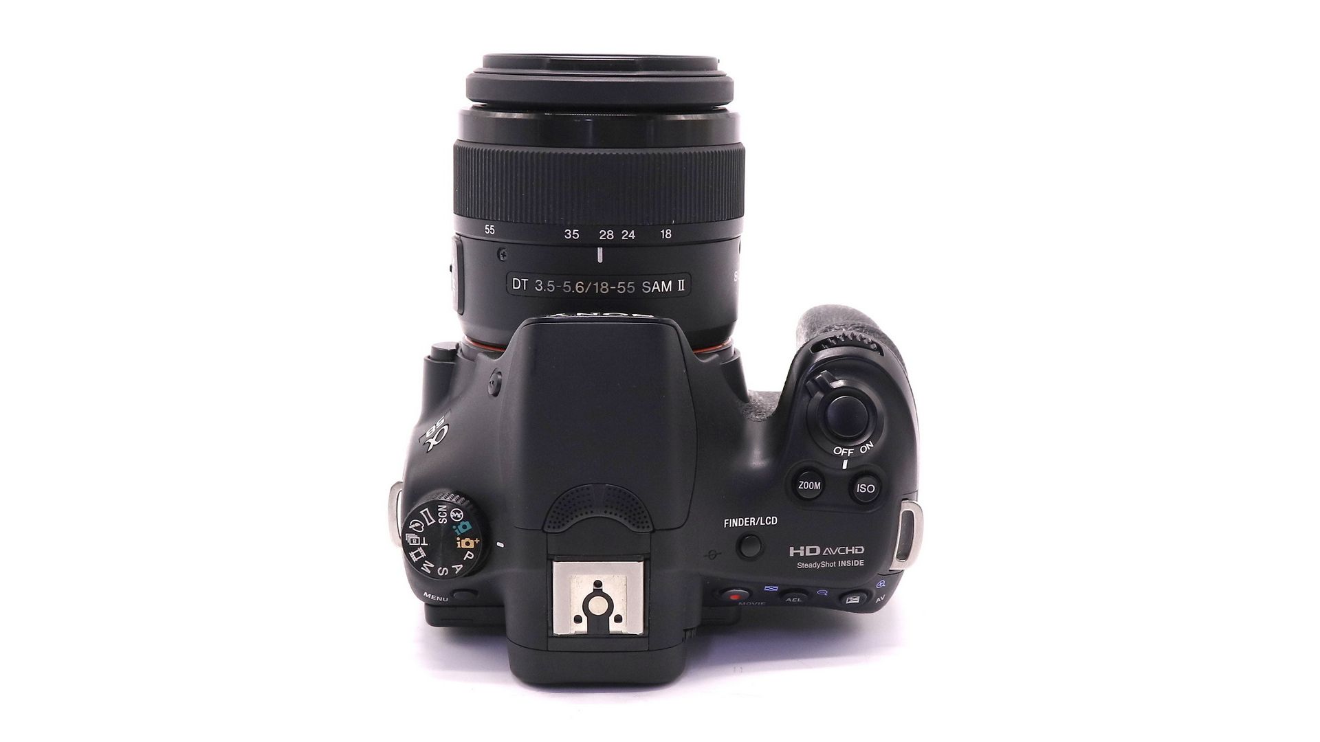Комплектация:Объектив Sony DT 18-55mm f/3.5-5.6 SAM II, аккумулятор, крышка объектива, зарядное устройство, ремень.