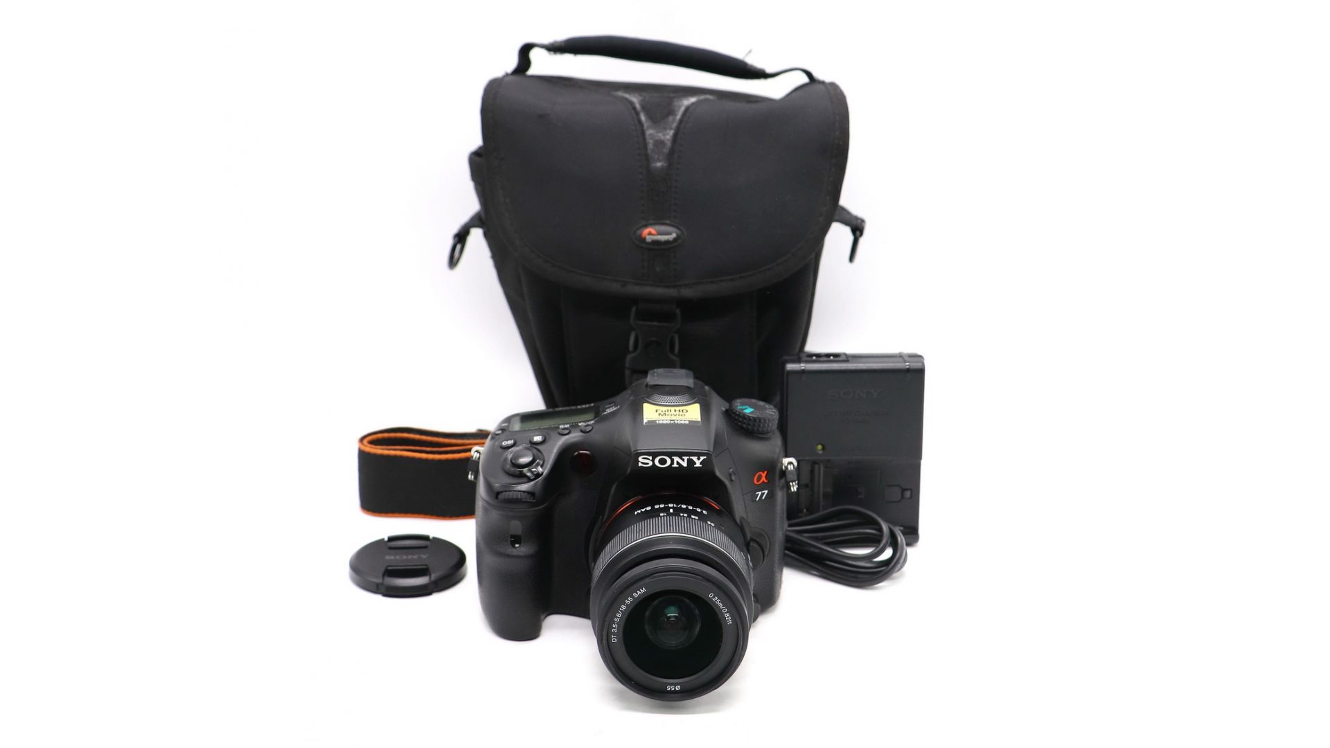Sony A77 стал значительным шагом в развитии концепции фотоаппаратов с неподвижным полупрозрачным зеркалом, получив крупный и яркий электронный видоискатель с разрешением 2,4 млн пикселей, возможность съёмки со скоростью до 12 кадров в секунду, а также новый КМОП-сенсор с рекордным для формата APS-C разрешением 24 млн пикселей. В числе других технических особенностей — система стабилизации сенсора, встроенный GPS-приёмник, 19-точечная система фокусировки, пылевлагозащищённый корпус и обладающий тремя степенями свободы ЖК-дисплей.