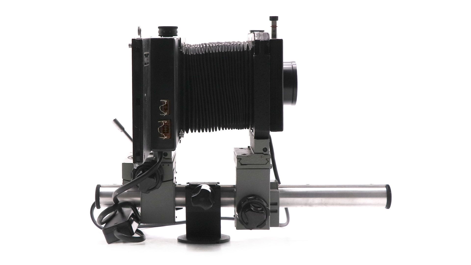 На оптической скамье смонтирован узел крепления кассеты с фотоплёнкой и соединённая с ним при помощи фокусировочного меха перемещаемая объективная панель. За счёт крепления на шарнирах, кассетная часть и объективная панель могут сдвигаться в двух направлениях и поворачиваться относительно двух осей, обеспечивая почти неограниченную свободу подвижек фотоаппарата для коррекции перспективы. К фотоаппарату присоединяются сменные кассеты для фотоплёнки типа 120, а также возможно применение кассет для специальной рулонной фотоплёнки шириной 60 мм и длиной до 17 м. Размер кадра 5,6×7,2 см, 10 кадров на фотоплёнке типа 120. Размер кадра 4,5×6 см, до 320 кадров на фотоплёнке длиной 17 метров.