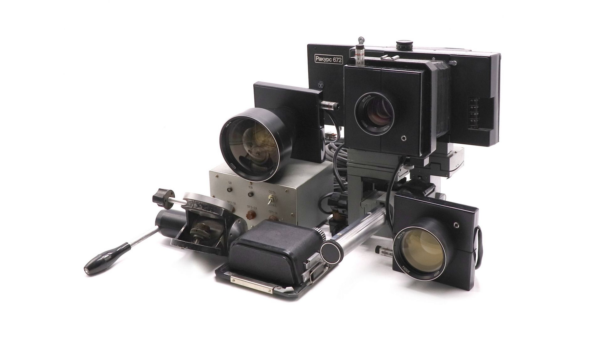Комплектация:Объектив Вега-23, объектив Вега-24, объектив Мир-41, блок питания, кассеты 1020, 1632, 200, 320, 1020,1632, зип, пульт управления. Полная комплектация на фото.
