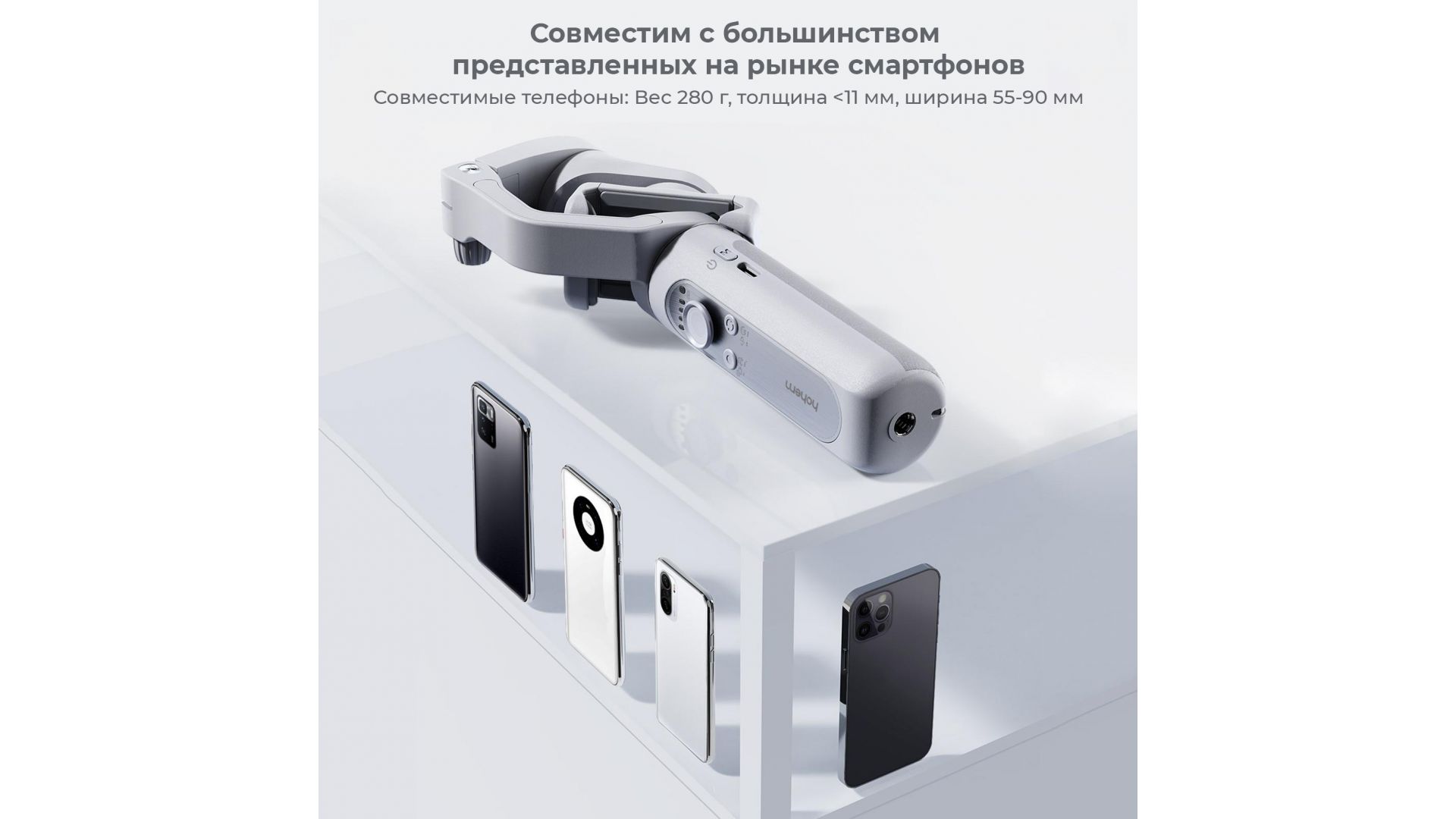 Размер стабилизатора для телефона в сложенном виде составляет всего 179x79x39 мм, а вес нетто составляет около 259 г, он очень легкий и портативный, его легко носить с собой во время путешествий.