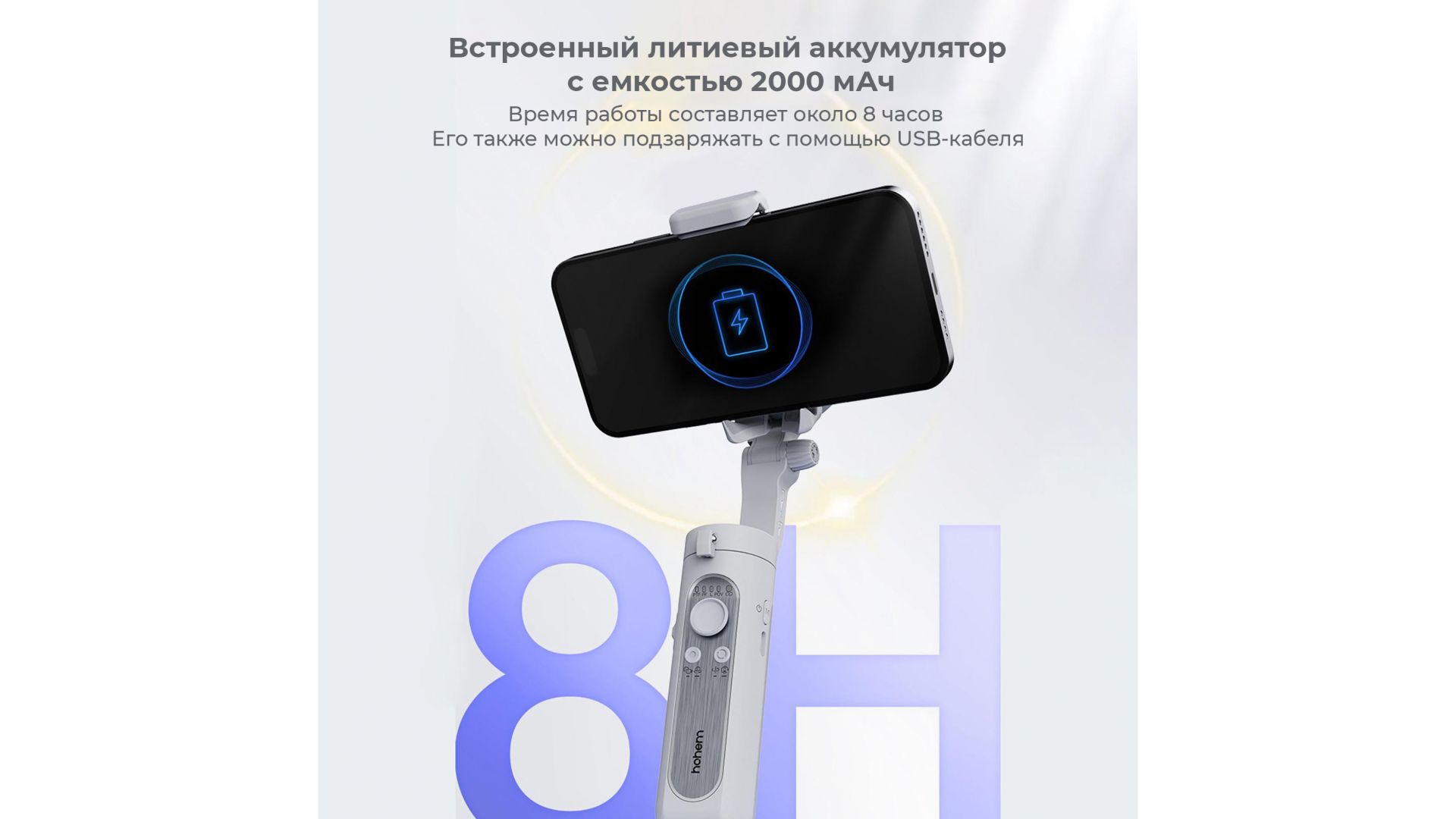 Комплектация:Стабилизатор, видеосвет, мини-штатив, USB-кабель для зарядки, руководство пользователя.
