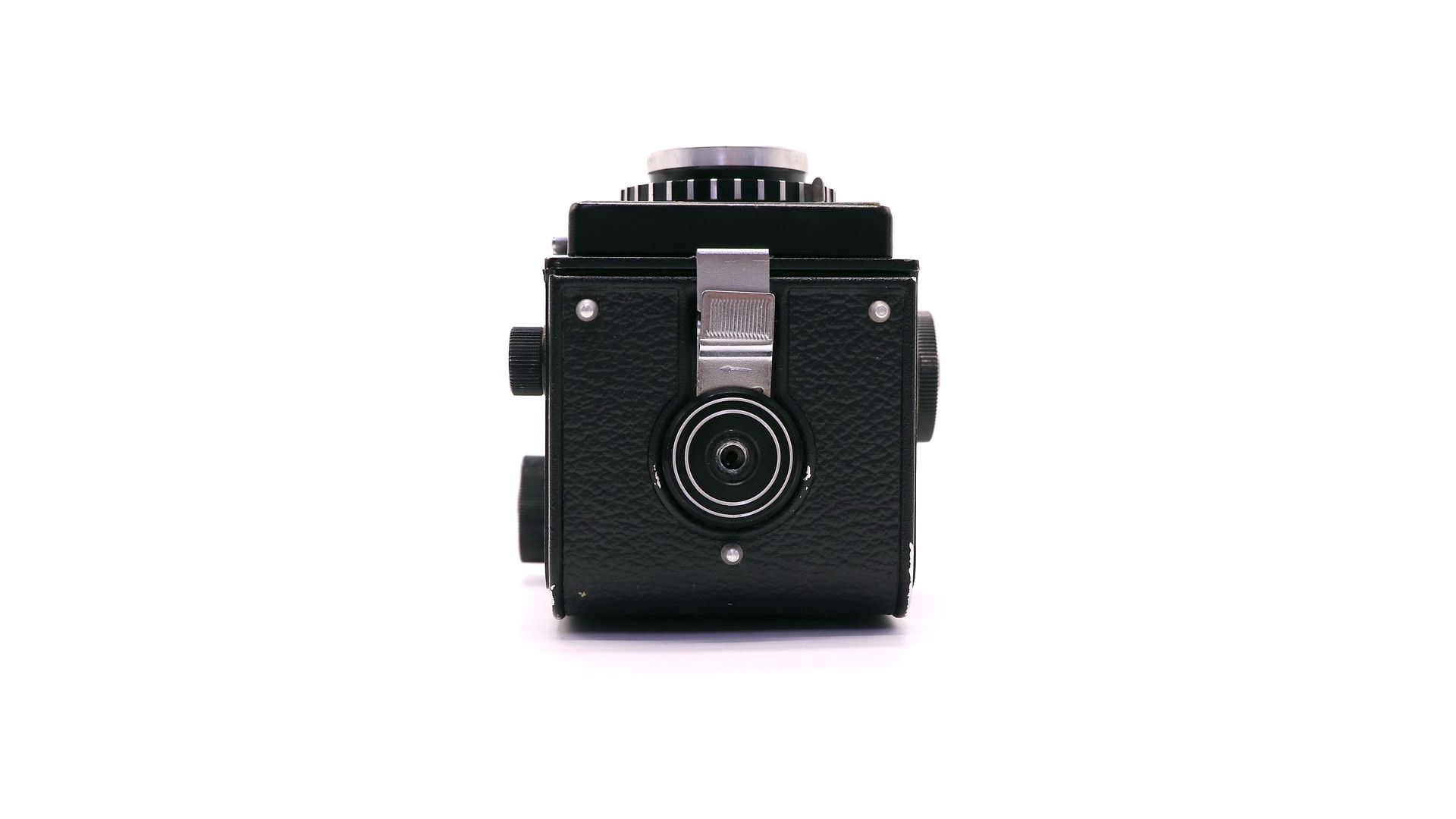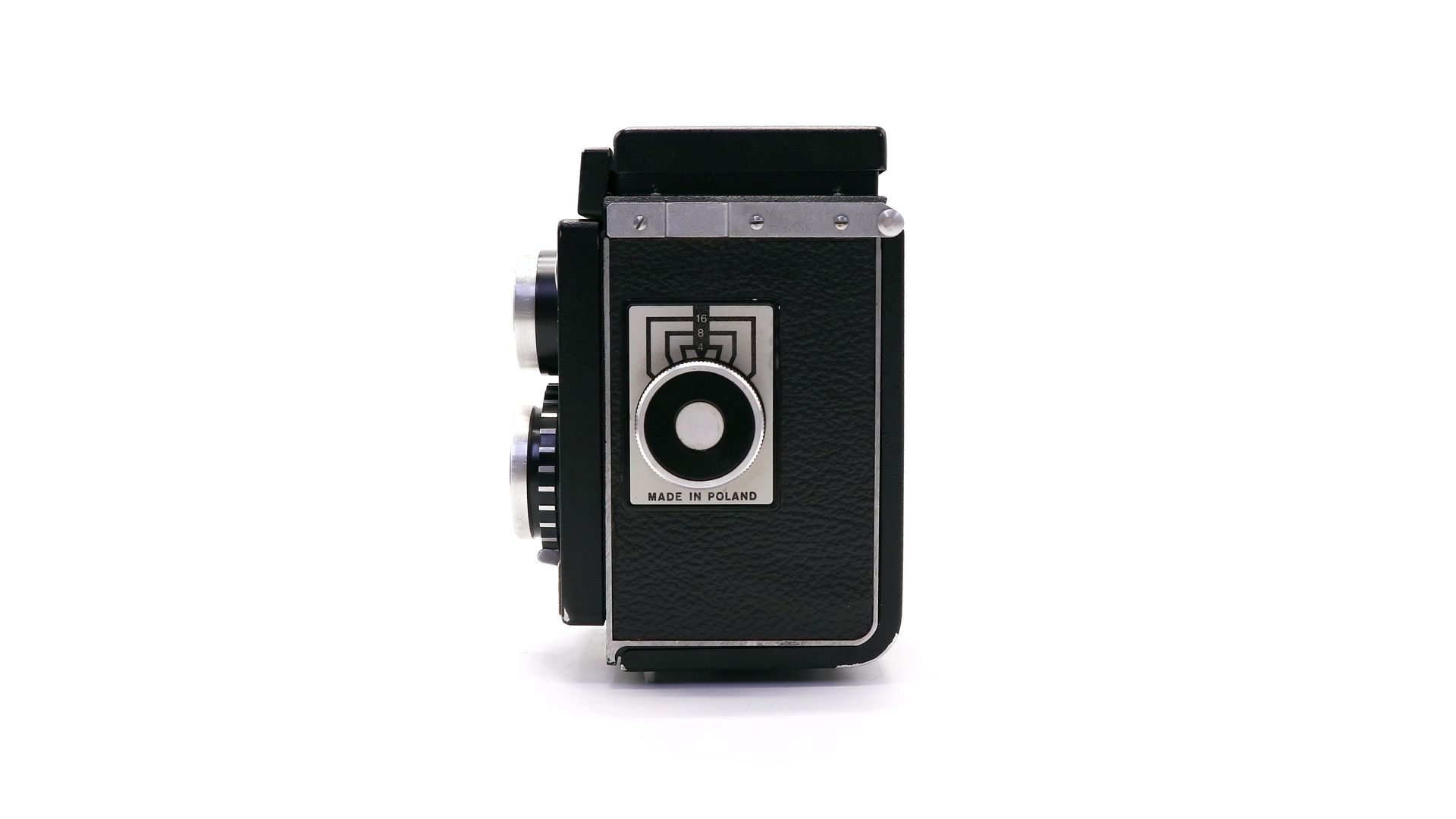 Камера имеет оптику Emitar 75/3.5 (триплет) и затвор со скоростями от B, 1/15, 1/30, 1/60, 1/125, 1/250. Учет кадров по окошку в крышке. Пленка - тип 120.