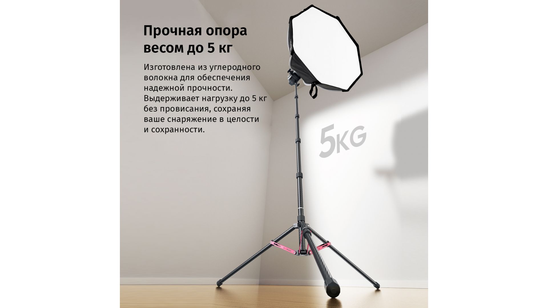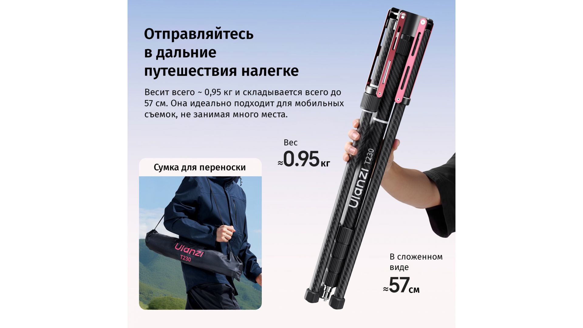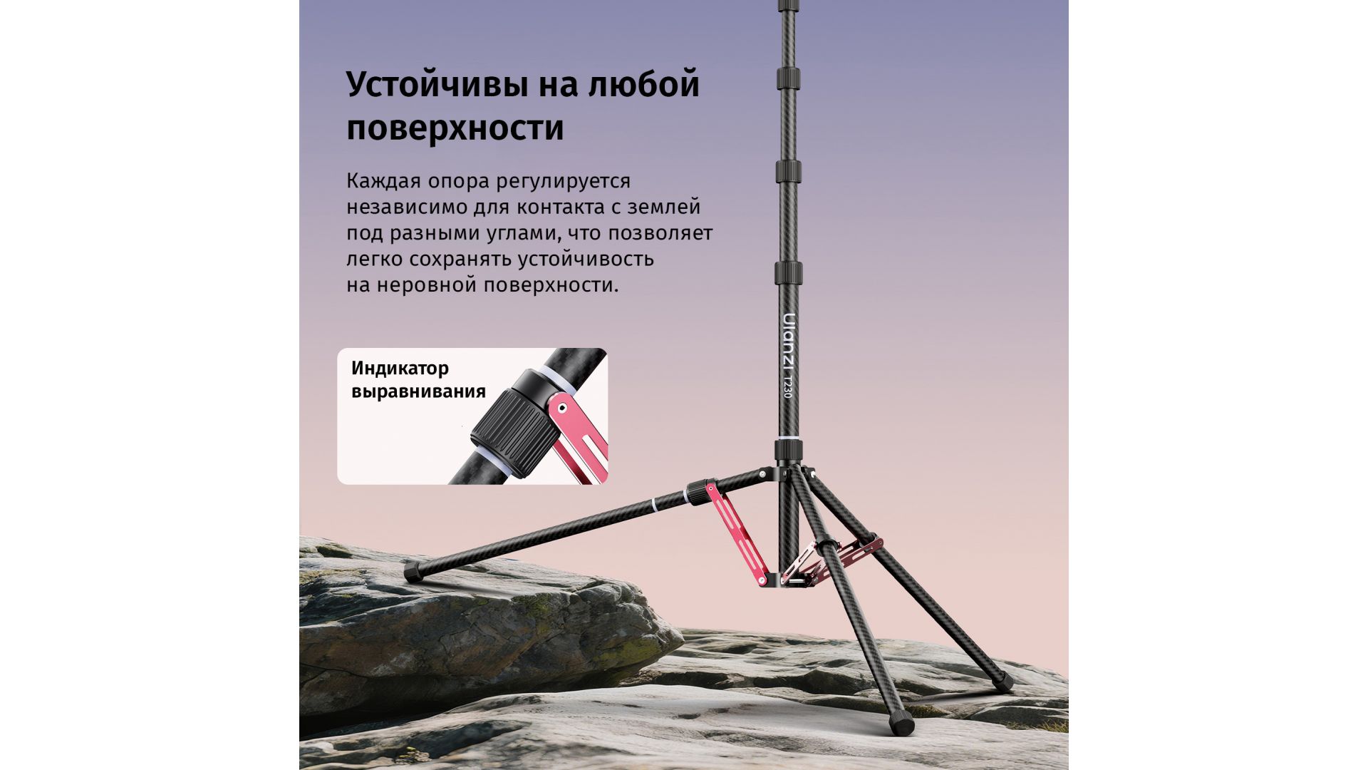 Профессиональная стойка для освещения Ulanzi T230 Pro — ваш универсальный помощник в съемках. Изготовленная из углеродного волокна, она сочетает малый вес (всего 0,95 кг) с впечатляющей прочностью, выдерживая до 5 кг оборудования.