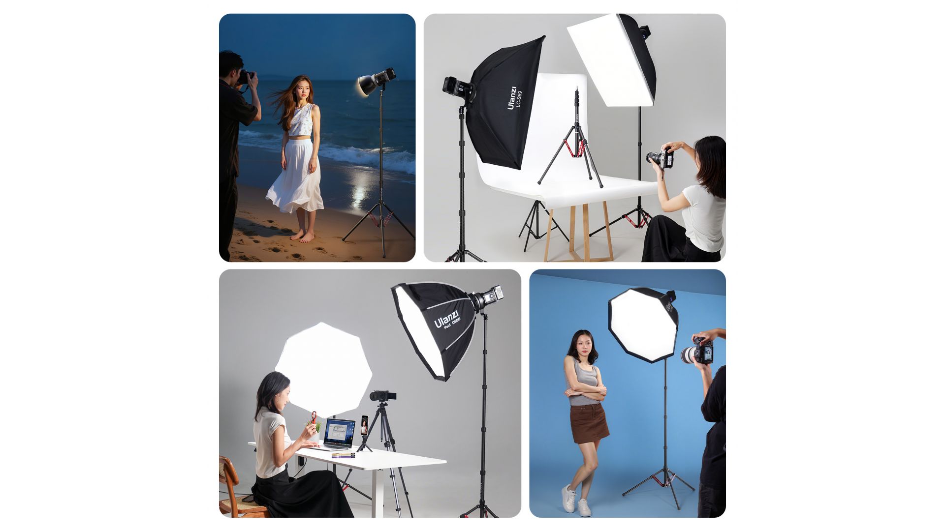 Оснащенная универсальным креплением 1/4", стойка совместима с COB-светильниками, кольцевыми лампами, камерами и другим оборудованием. T230 Pro — это надежность, портативность и безграничные возможности для творчества в студии и на выезде.