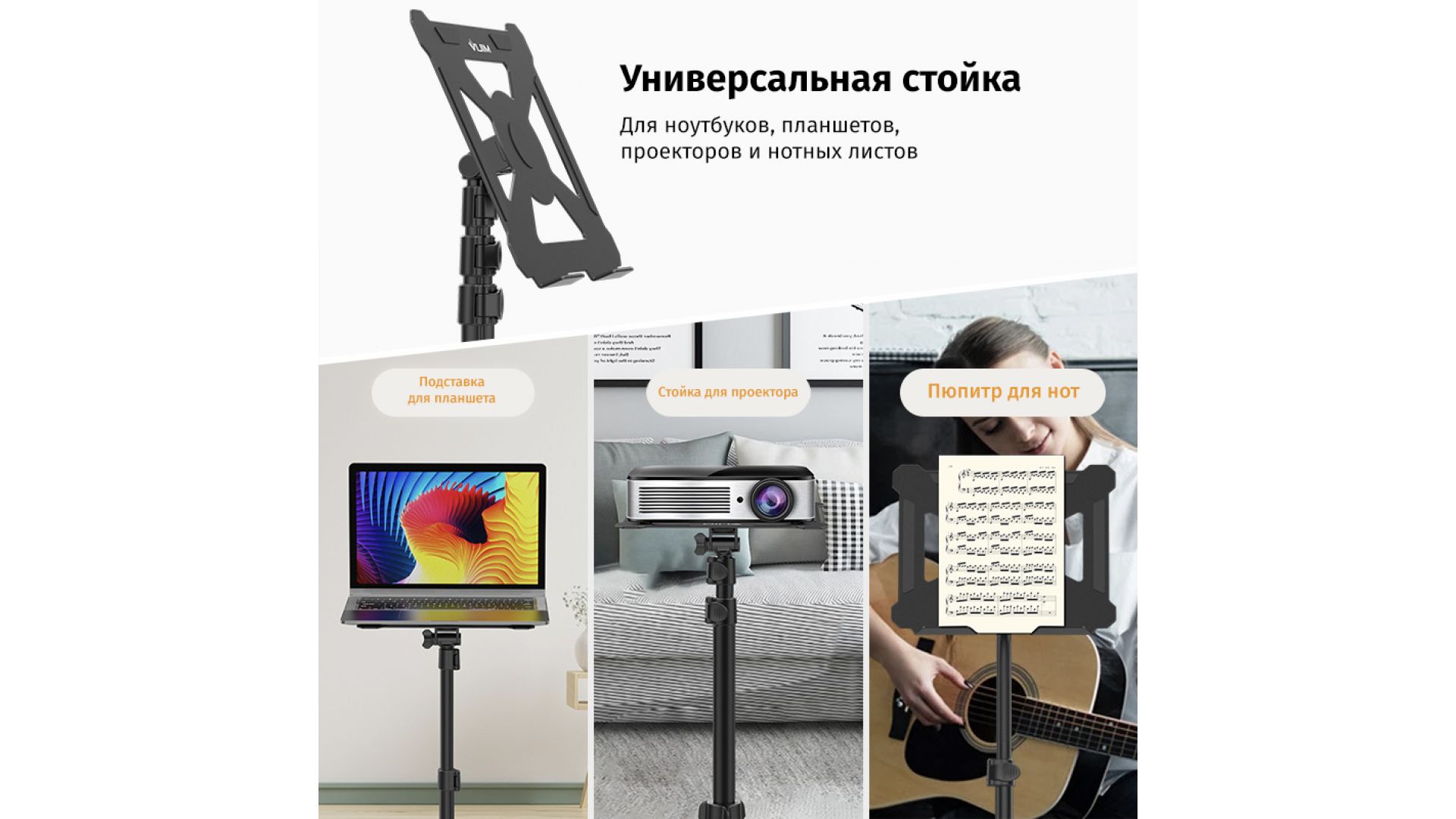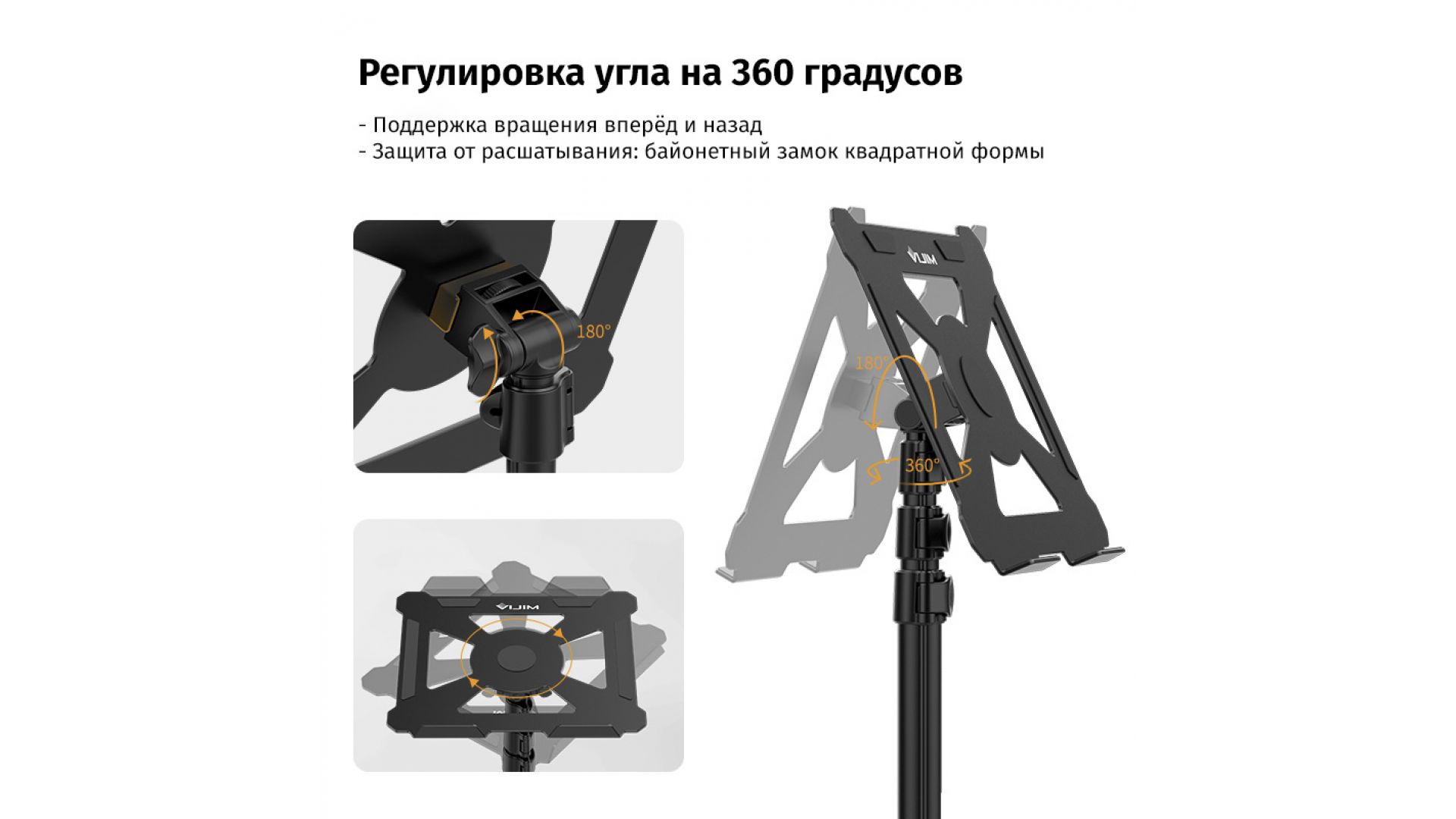 Стойка-пюпитр Ulanzi LT-01 - универсальная подставка для ноутбука, планшета, нот, документов или даже проектора. Выдерживает до 3 кг, а подвижное крепление позволяет наклонять подставку на 180° и вращать на 360° для комфортного использования.
