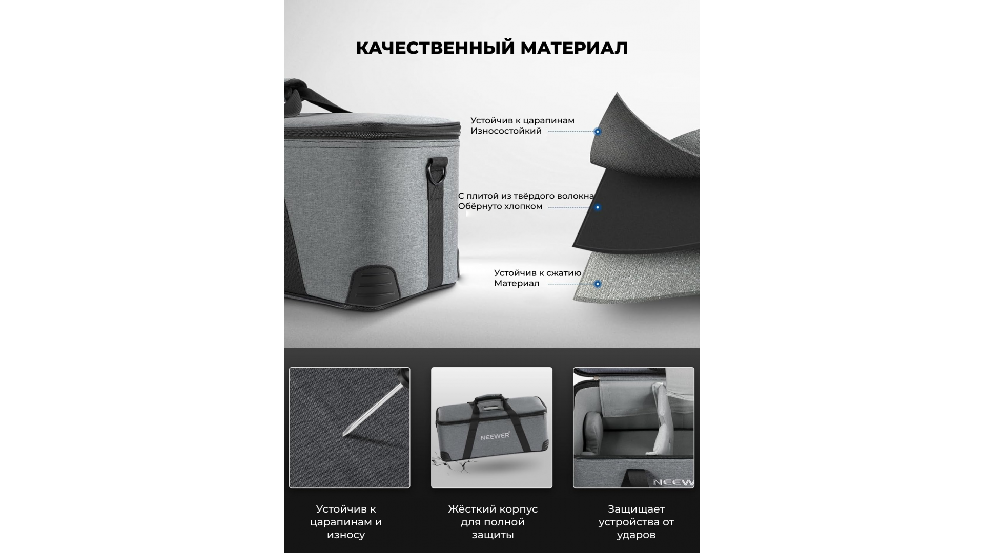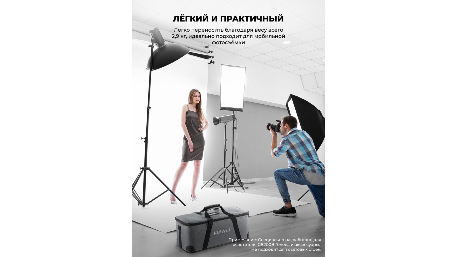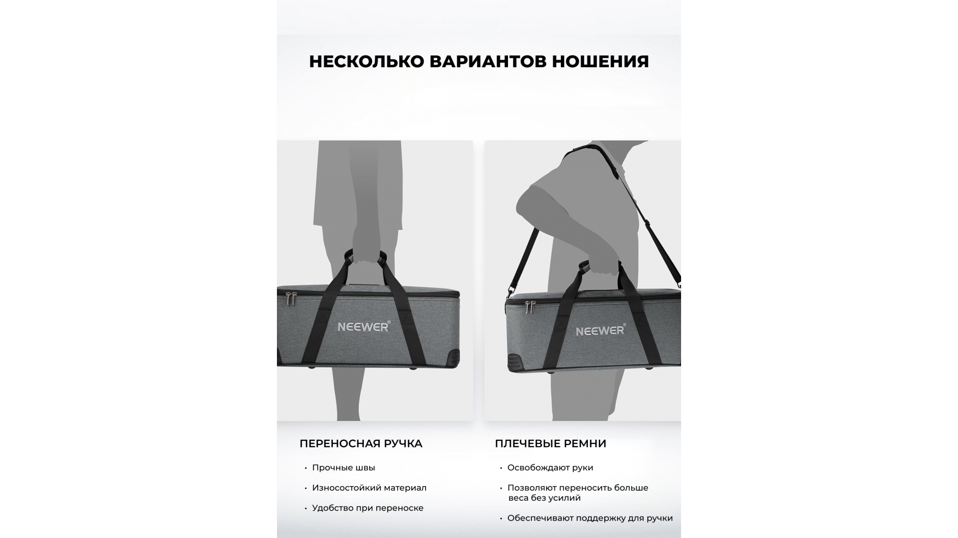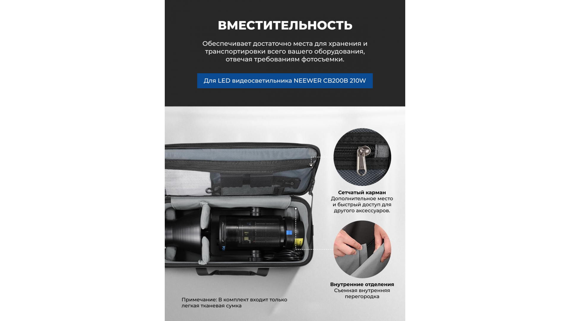 Идеальное решение для транспортировки и защиты студийной вспышки и аксессуаров. Сумка полностью совместима с видеосветом NEEWER серий CB, FS, MS и стробоскопом Vision 4.