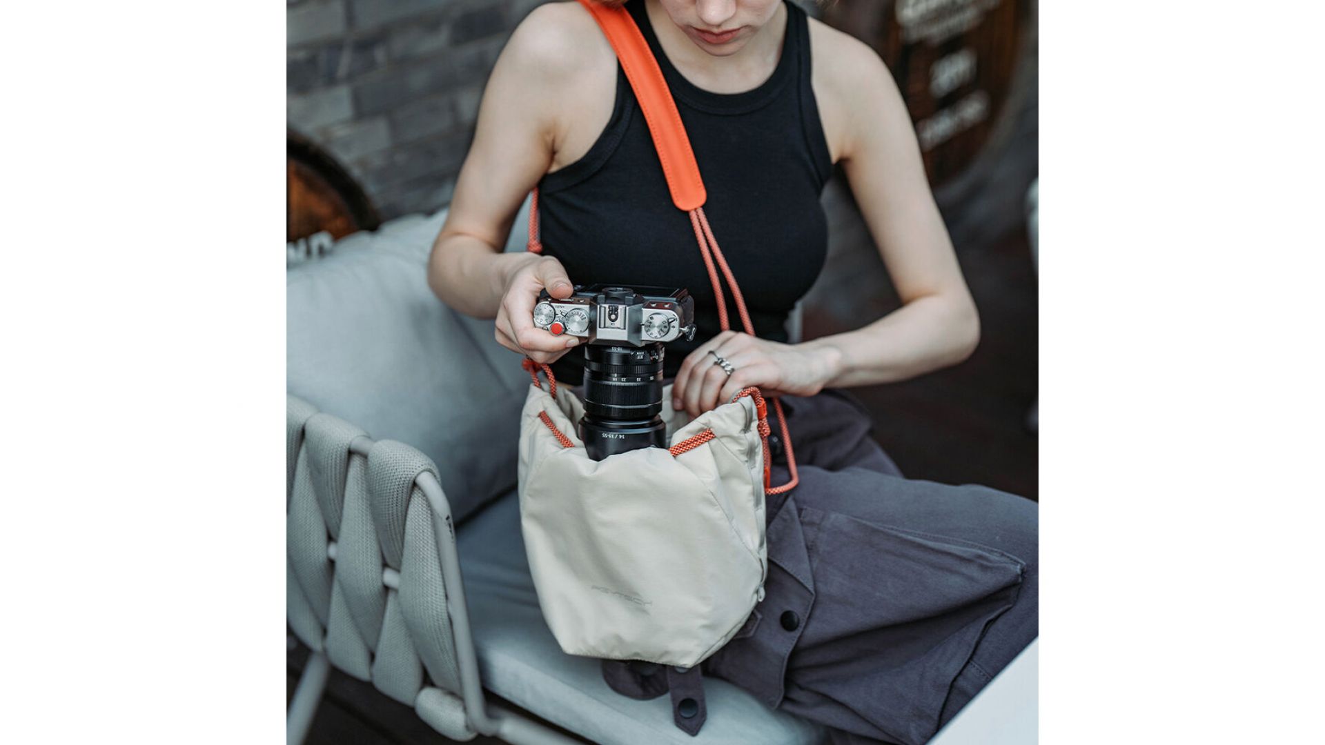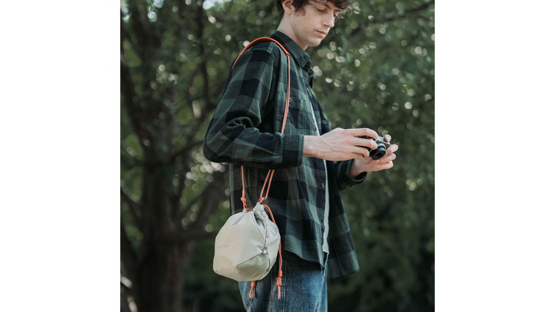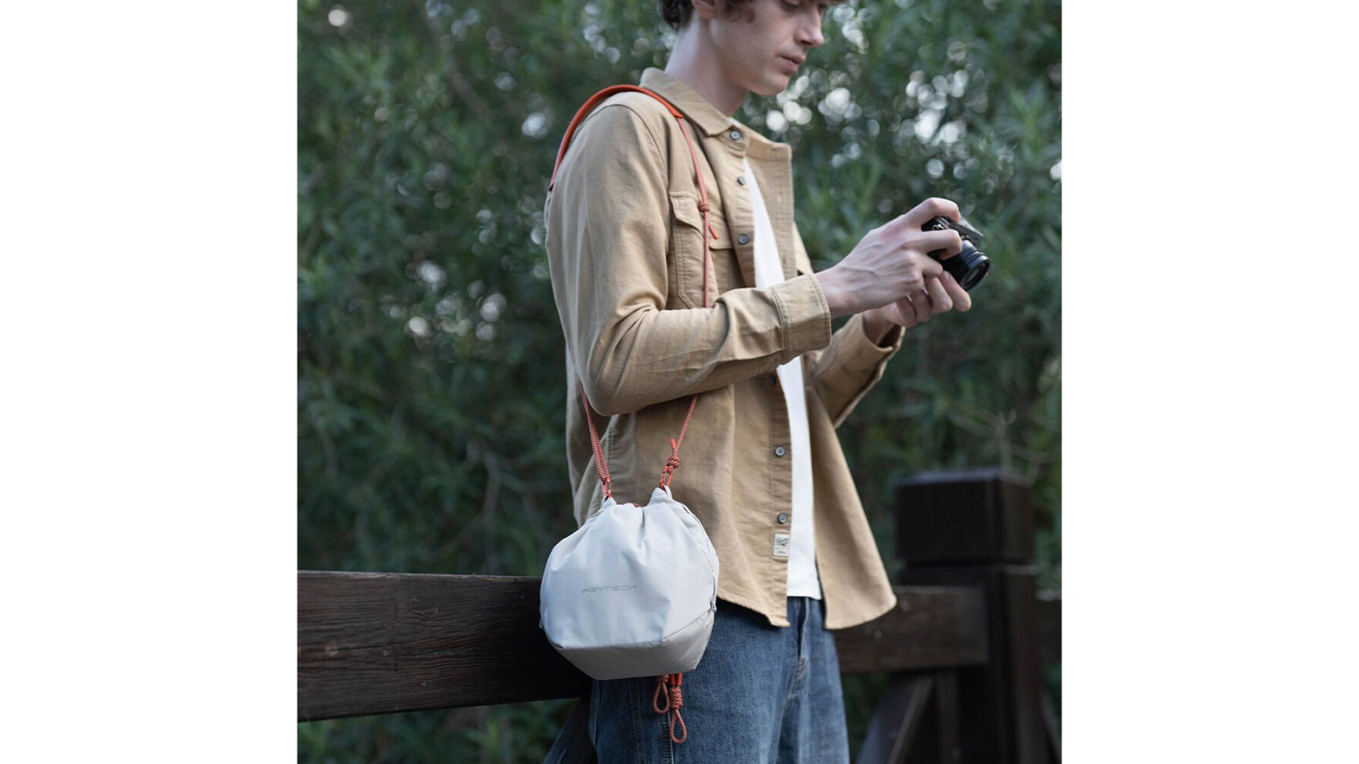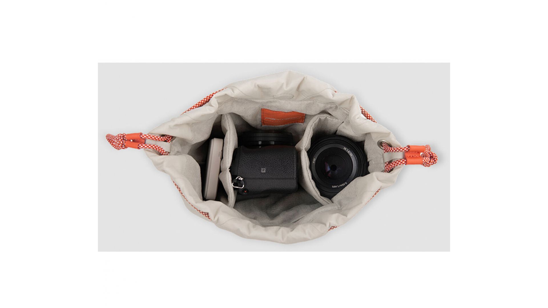 Универсальная сумка OneGo Drawstring Bag цвета слоновой кости от PGYTECH может использоваться для переноски фотооборудования или повседневных вещей. Носите ее в руке, надевайте на плечо или используйте как куб для камеры внутри большой сумки. Она вмещает маленькую или среднюю беззеркальную камеру и дополнительный объектив. Вы можете снять ремень и использовать ее для переноски камеры весом до 3,3 фунта. Застежка на шнурке оснащена защитными застежками для защиты вашего содержимого. Многослойная толстая подкладка защищает ваши вещи от легких ударов и толчков. Скрытый карман вмещает ваш Apple AirTag, так что вы можете найти сумку, если она потеряется.
