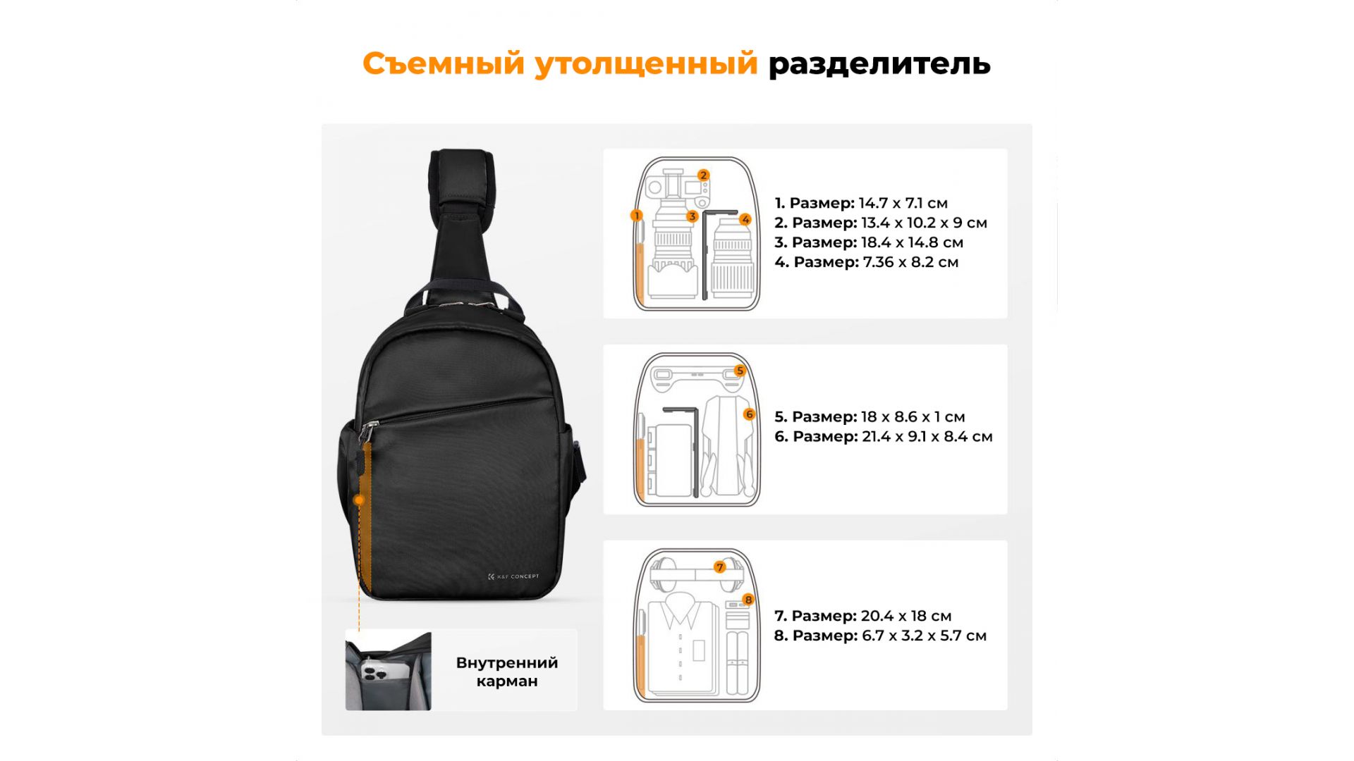 Комплектация:Сумка-слинг K&F Concept KF13.171, ремень