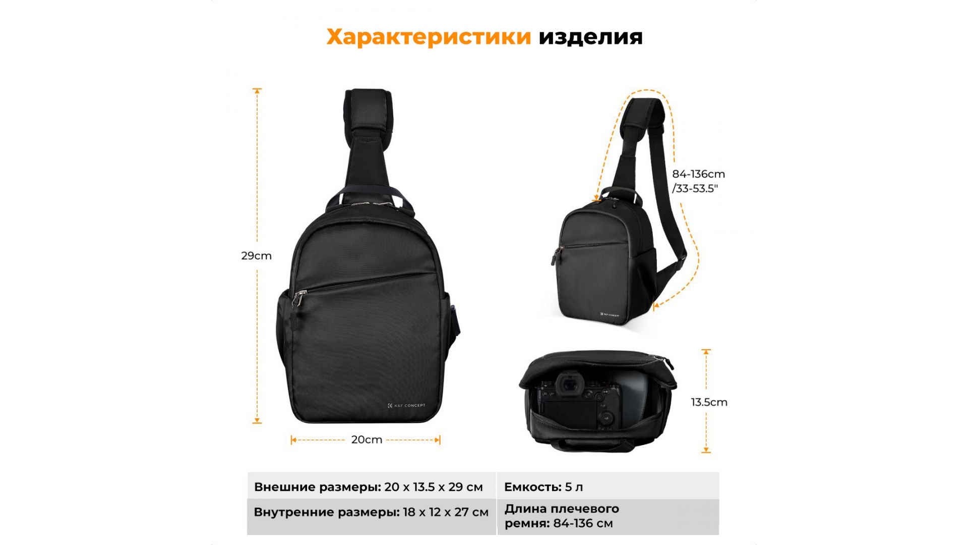 При весе всего 390 г она вмещает 1 зеркальную камеру + 1 объектив, аккумулятор и другие мелкие аксессуары для камеры. Сумка-слинг K&F Concept KF13.171 идеально подходит для небольших фотоаппаратов, беззеркальных камер и компактных фотоаппаратов.