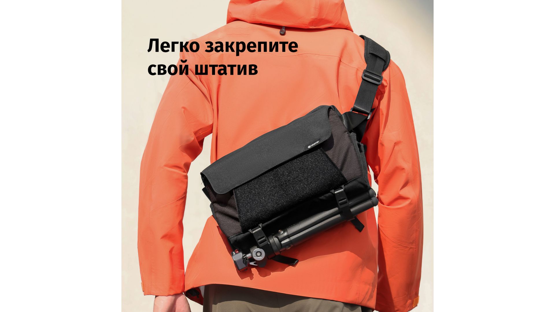 Съемная перегородка позволяет легко менять компоновку, обеспечивая идеальную посадку и надежную защиту снаряжения. Берите штатив или зонт без неудобств — нижняя система крепления прочно фиксирует оборудование, всегда держа его под рукой.