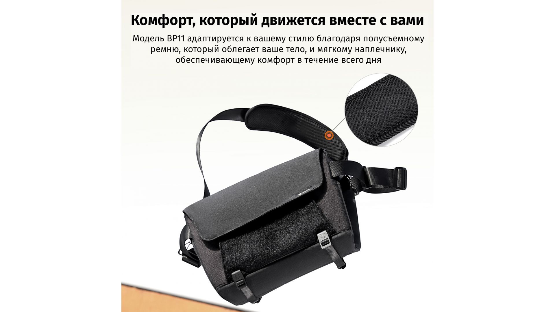 Сумка-слинг BP11 адаптируется под ваш стиль благодаря полу-съемному ремню с эргономичной посадкой и мягкой плечевой накладкой для комфорта даже при длительном ношении.